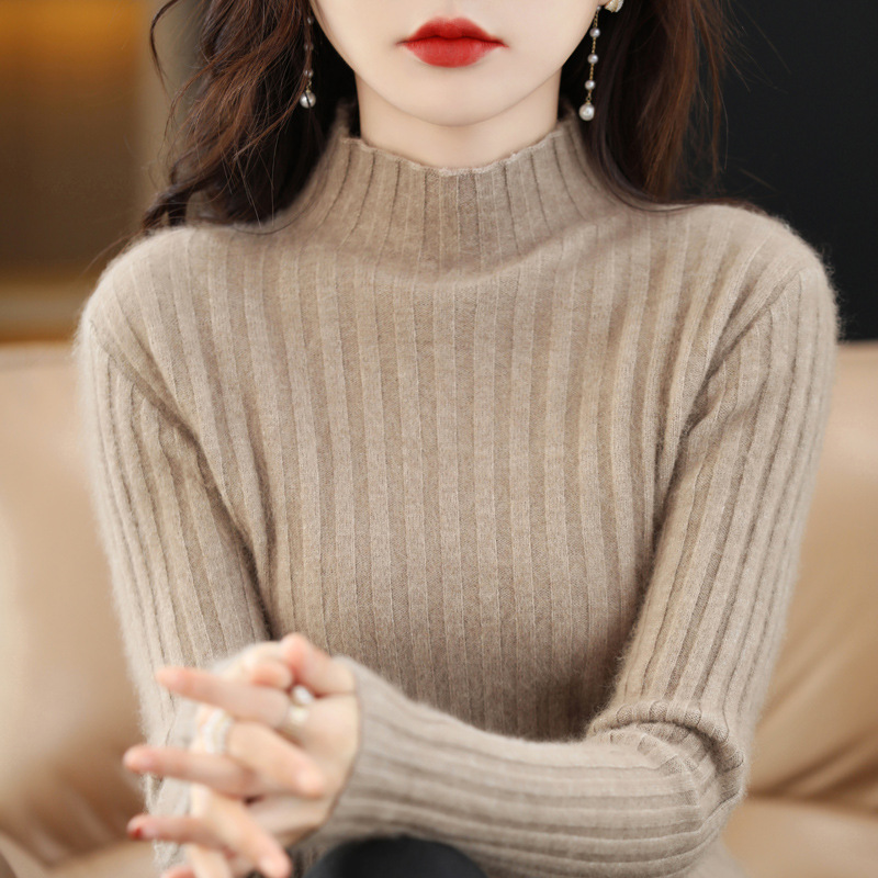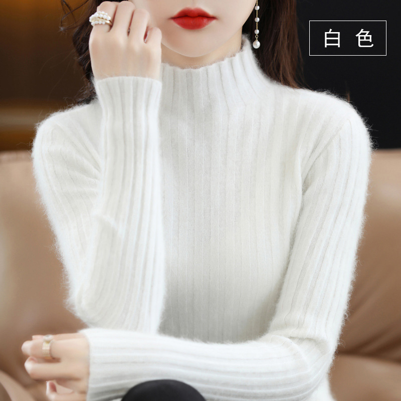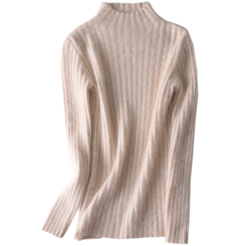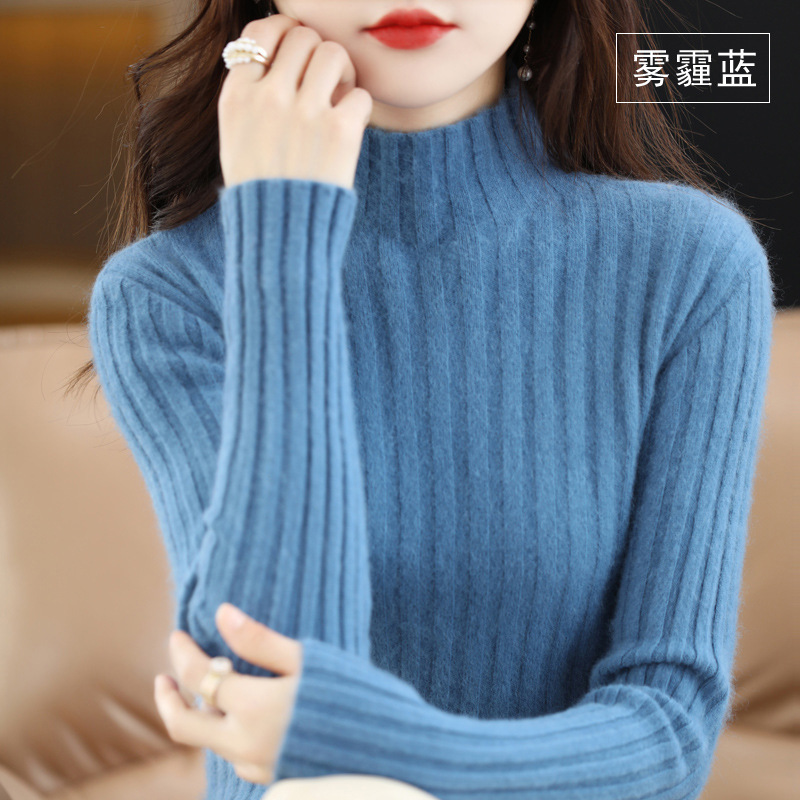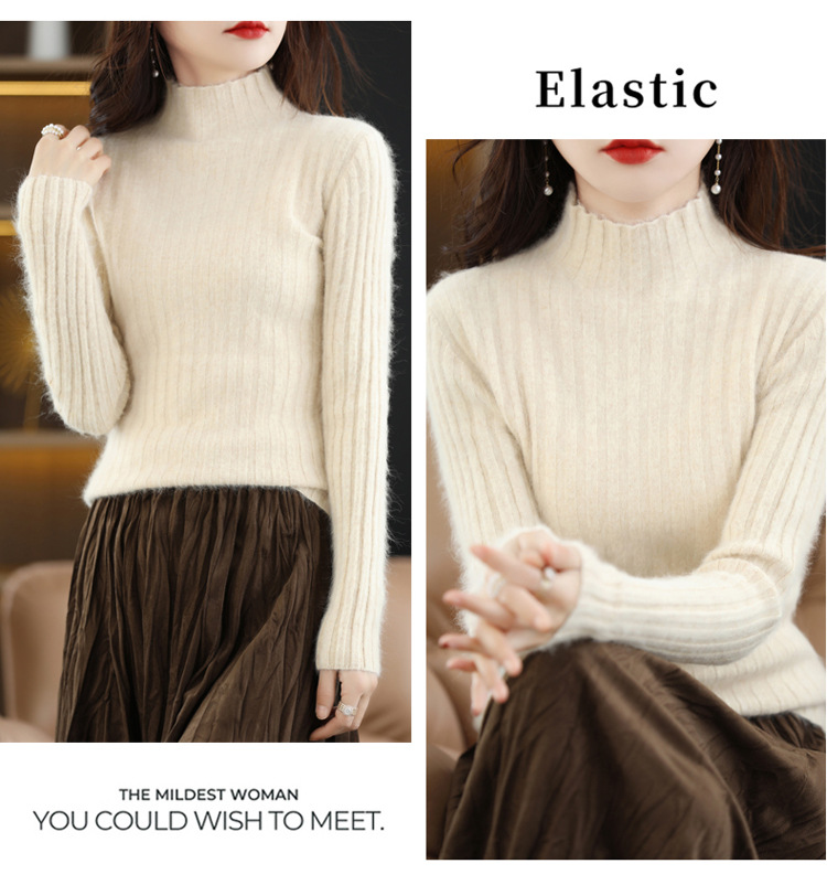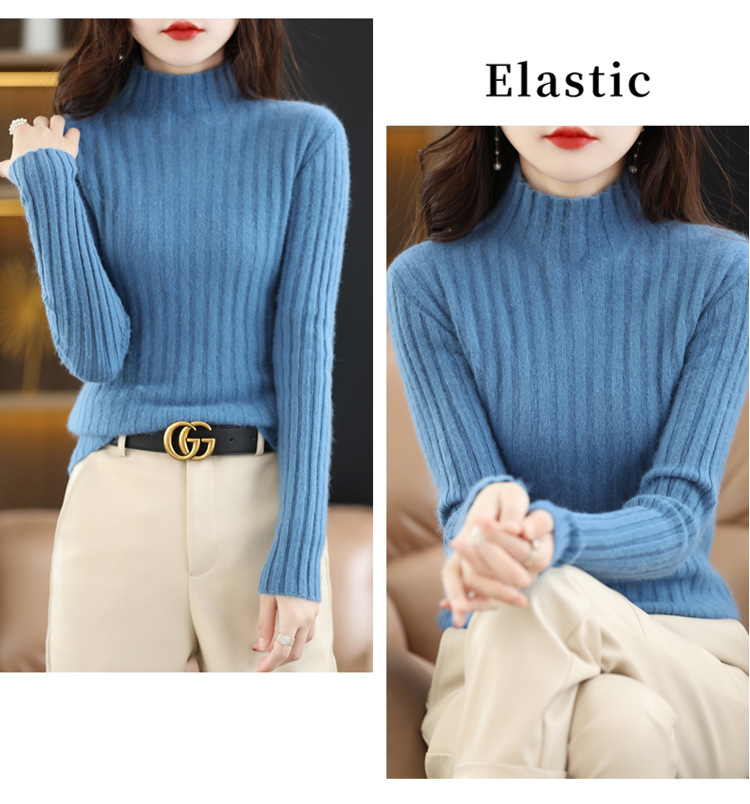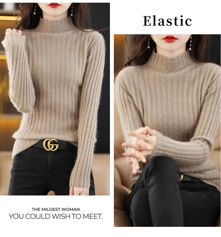 Женский свитер с воротником-стойкой из искусственного меха, шерстяной вязаный пуловер, стильная осенне-зимняя утепленная базовая одежда, облегающий крой.