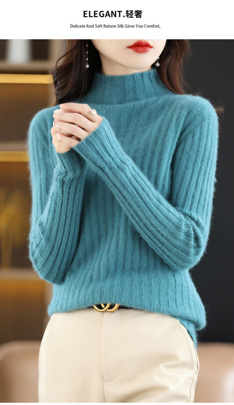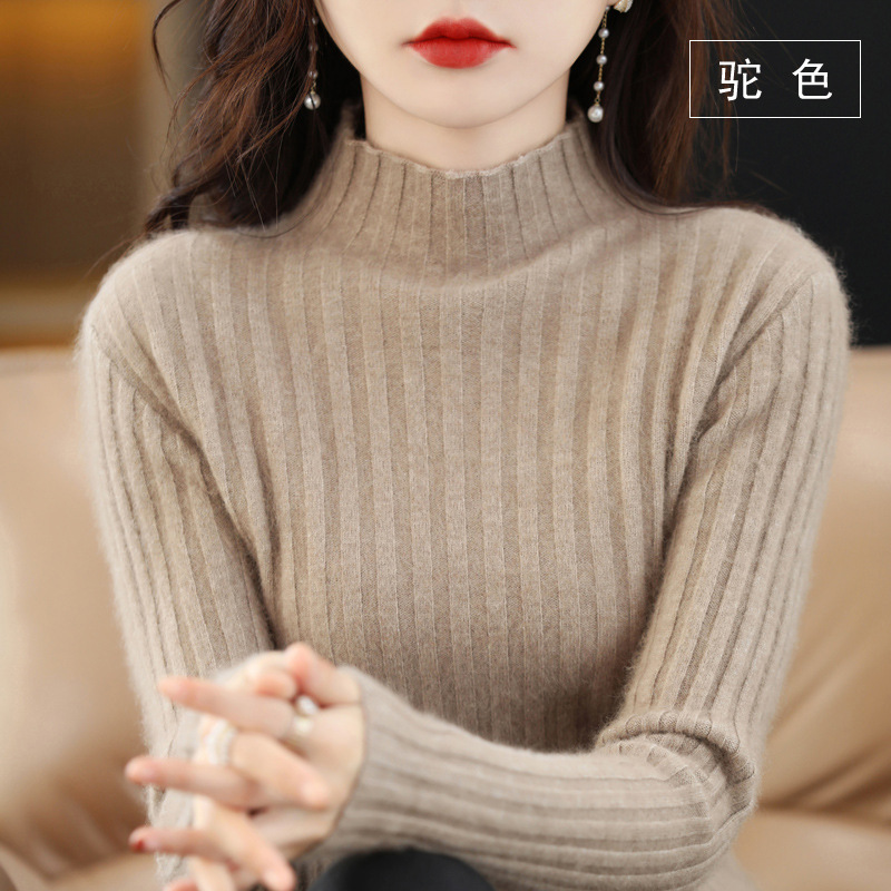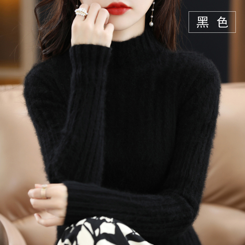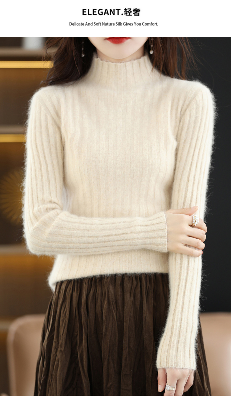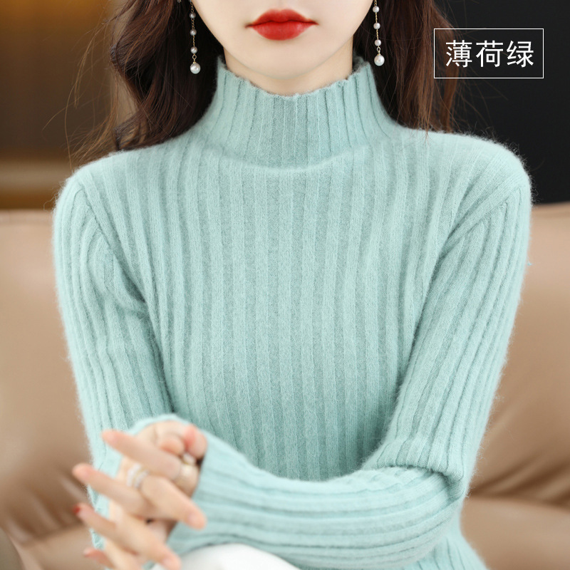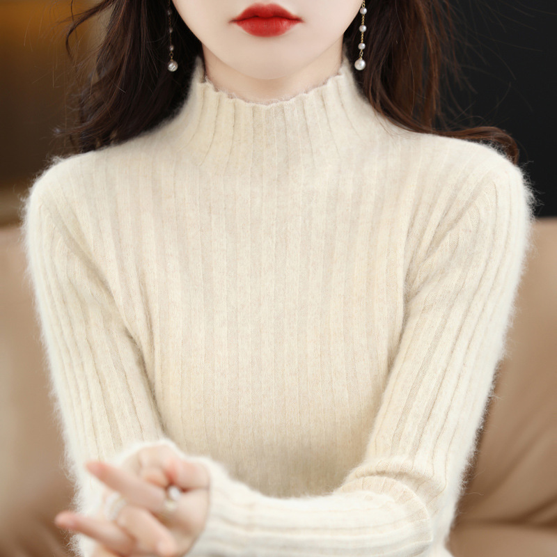 Женский свитер с воротником-стойкой из искусственного меха, шерстяной вязаный пуловер, стильная осенне-зимняя утепленная базовая одежда, облегающий крой.