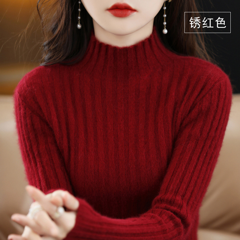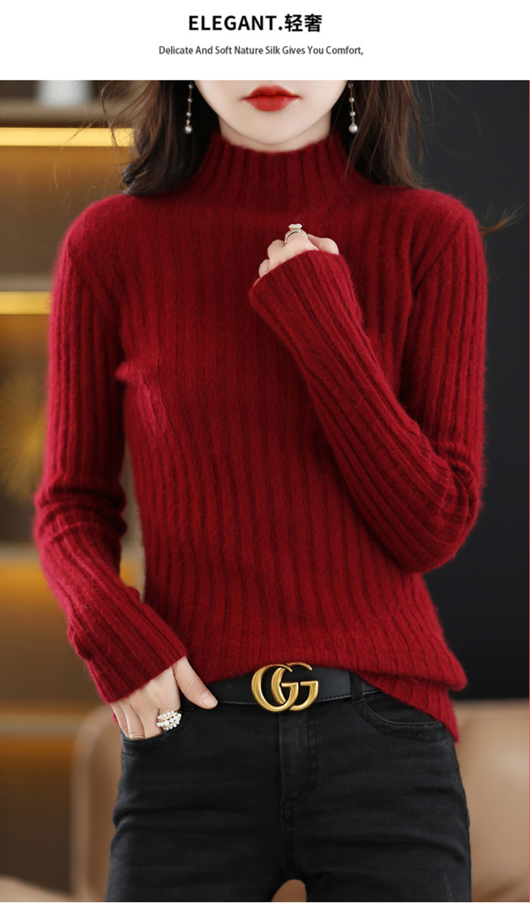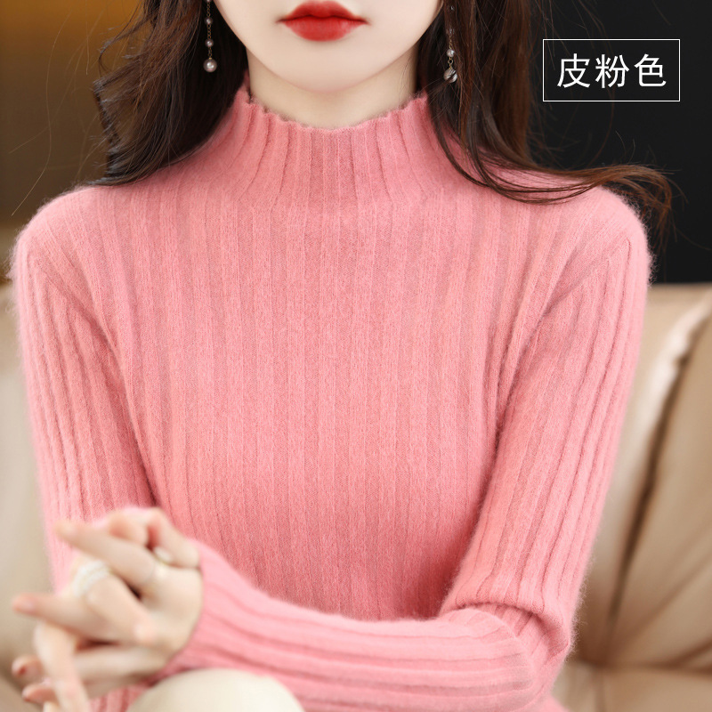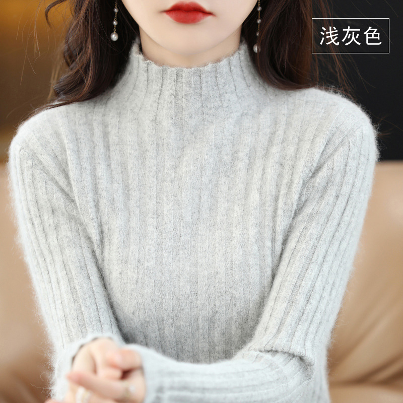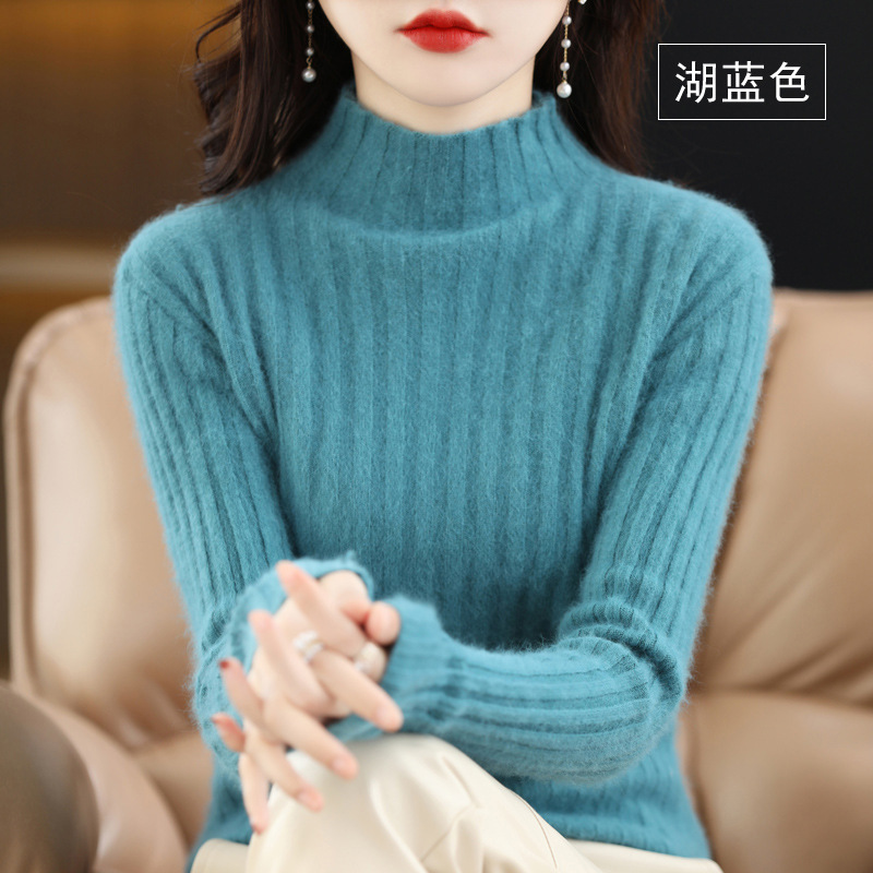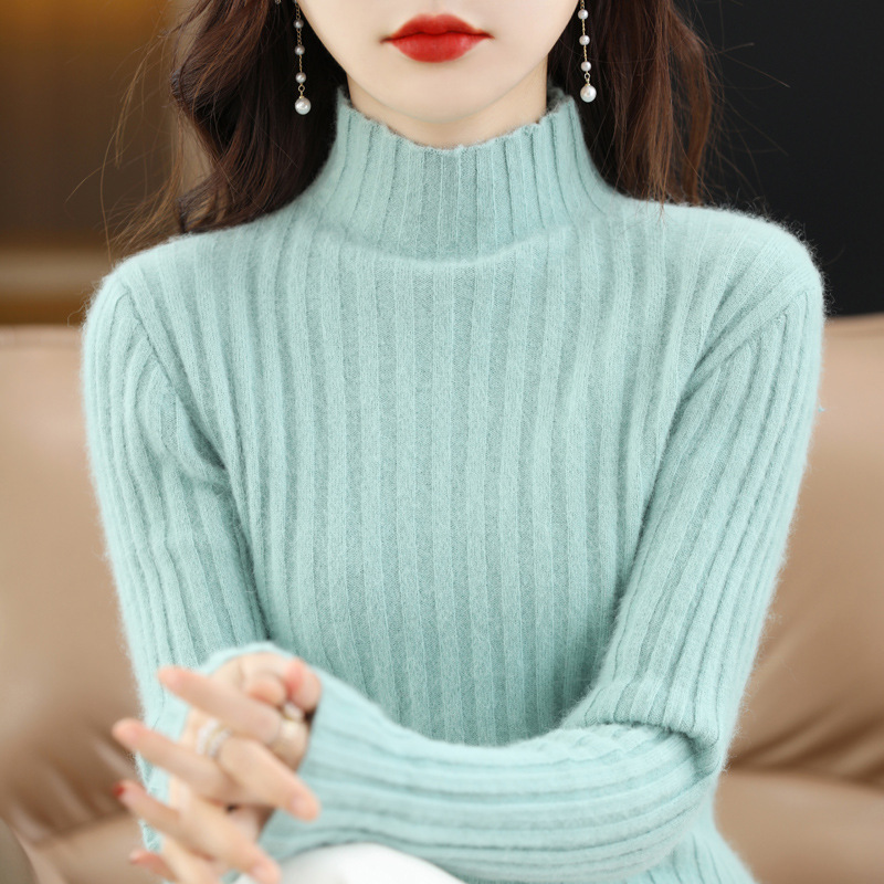 Женский свитер с воротником-стойкой из искусственного меха, шерстяной вязаный пуловер, стильная осенне-зимняя утепленная базовая одежда, облегающий крой.