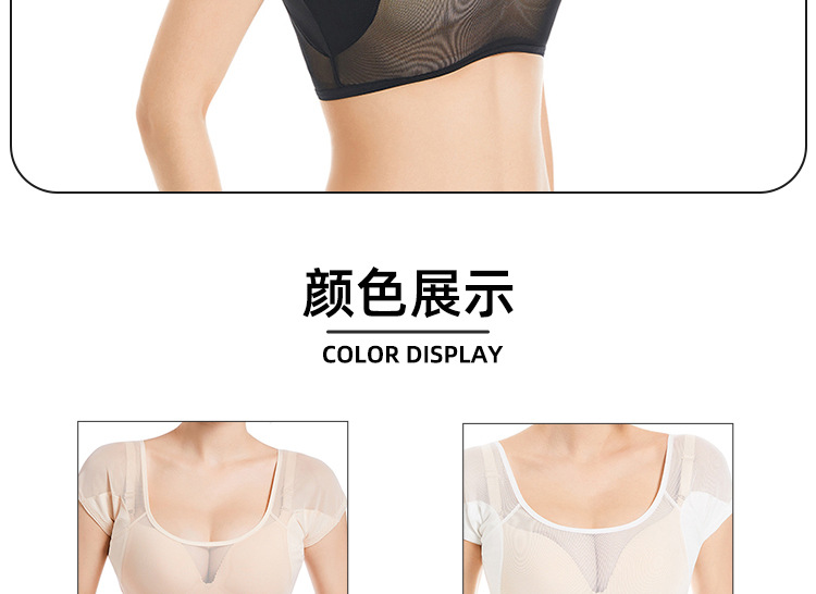 Тон кожи сетчатая пряжа (подмышки для быстрого высыхания); Черная сетчатая пряжа (подмышки для быстрой сушки); Белая сетчатая пряжа (подмышки для быстрой сушки); Цвет кожи сетчатая пряжа (подмышки ватные прокладки); Черная сетчатая пряжа (подмышечная ватная прокладка); Белая сетчатая пряжа (подмышечная ватная прокладка)