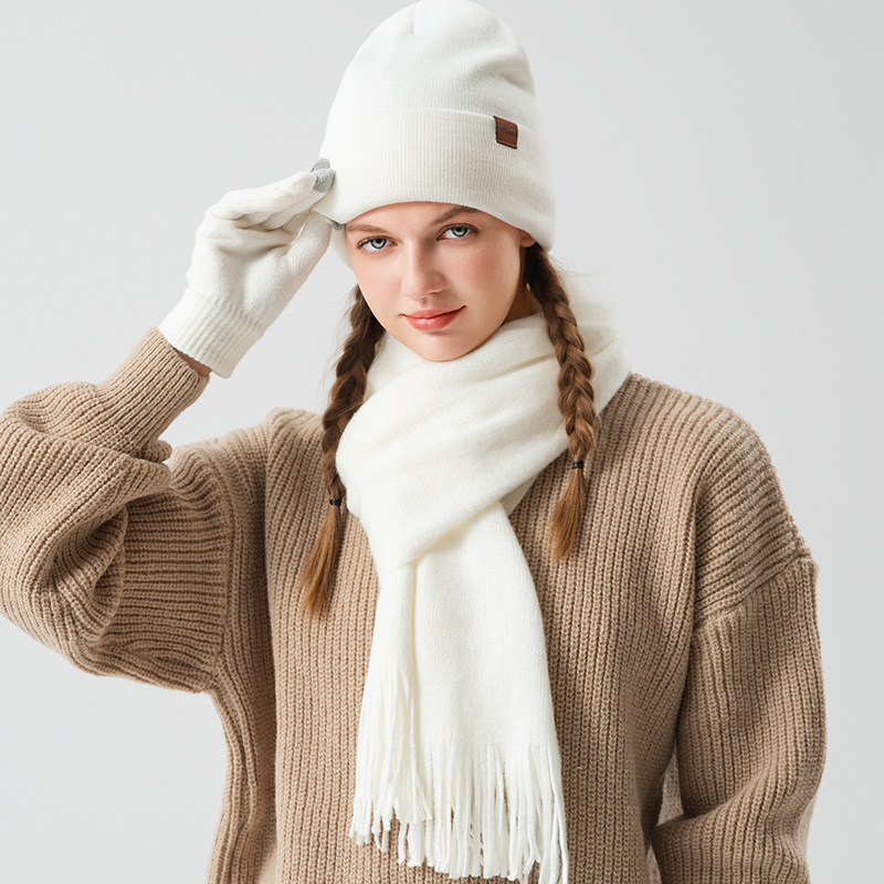 Комплект из трех предметов: шарф, шапка и перчатки.