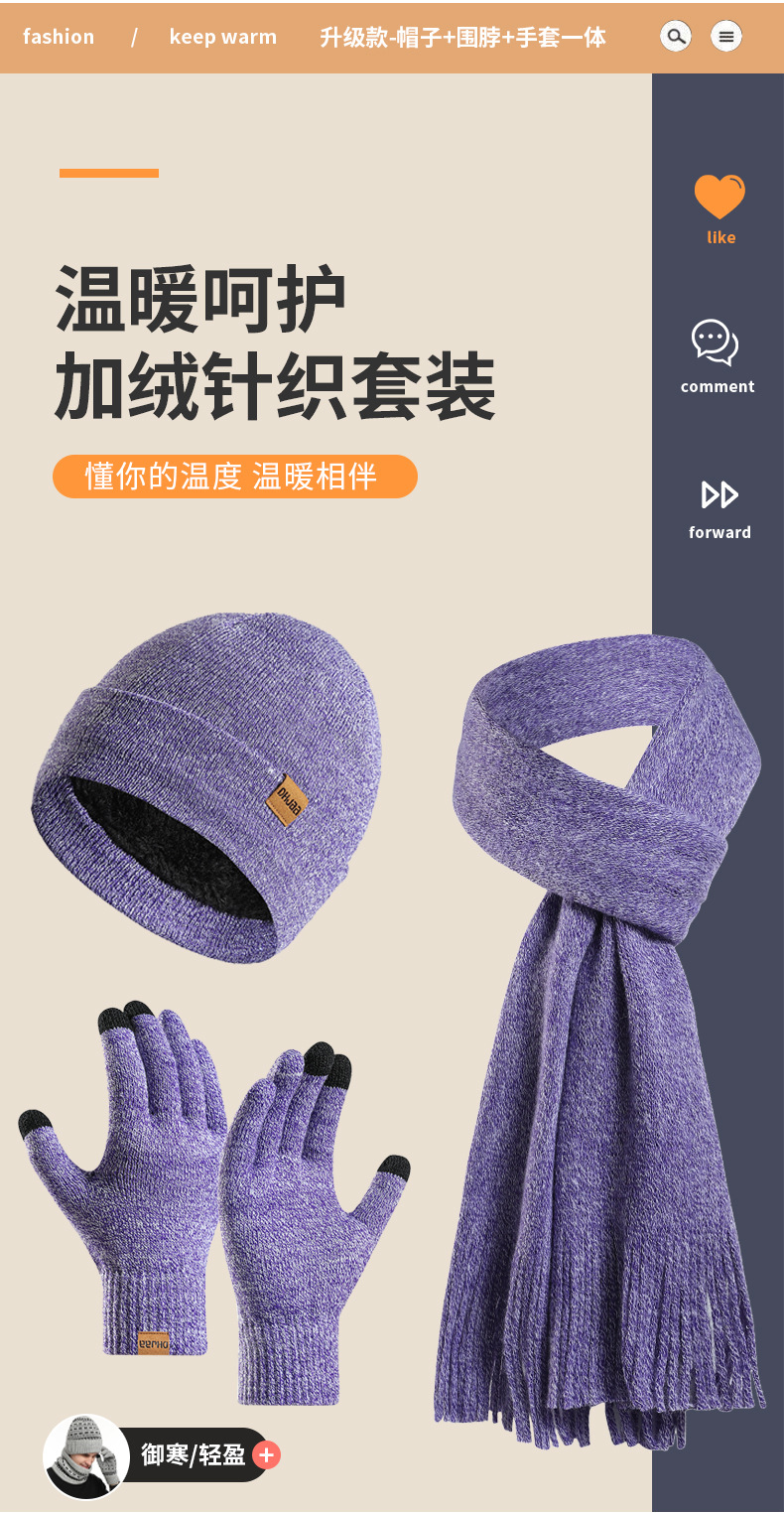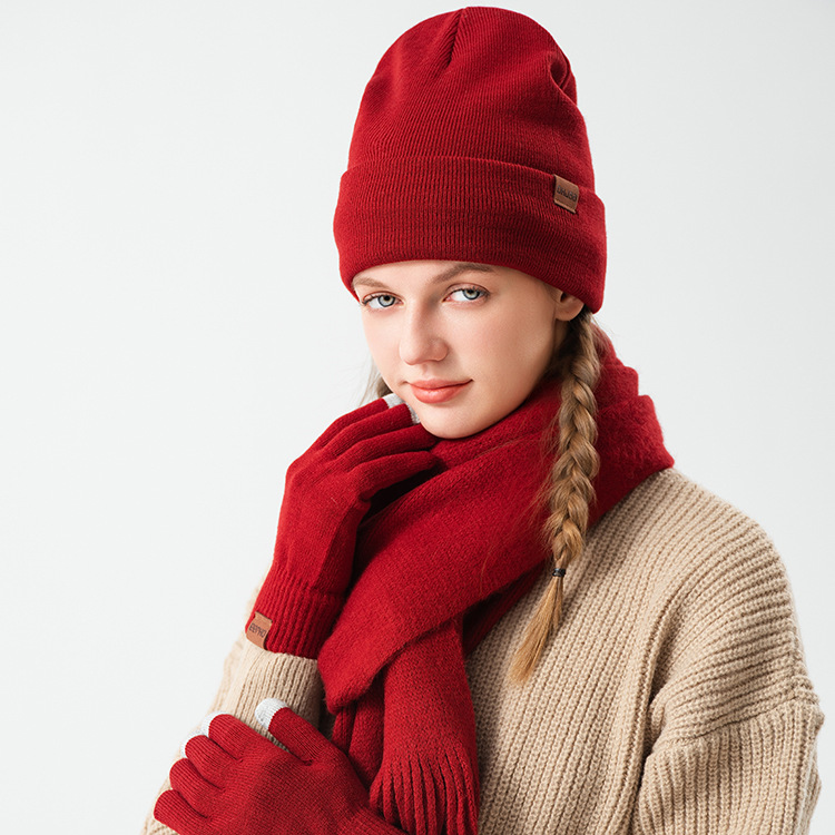 Amazon Новый костюм Европейский и американский осенне-зимний вязаная шапка на флисовой подкладке Шарф Перчатки Мужской и женский теплый шерстяной Комплект из трех предметов