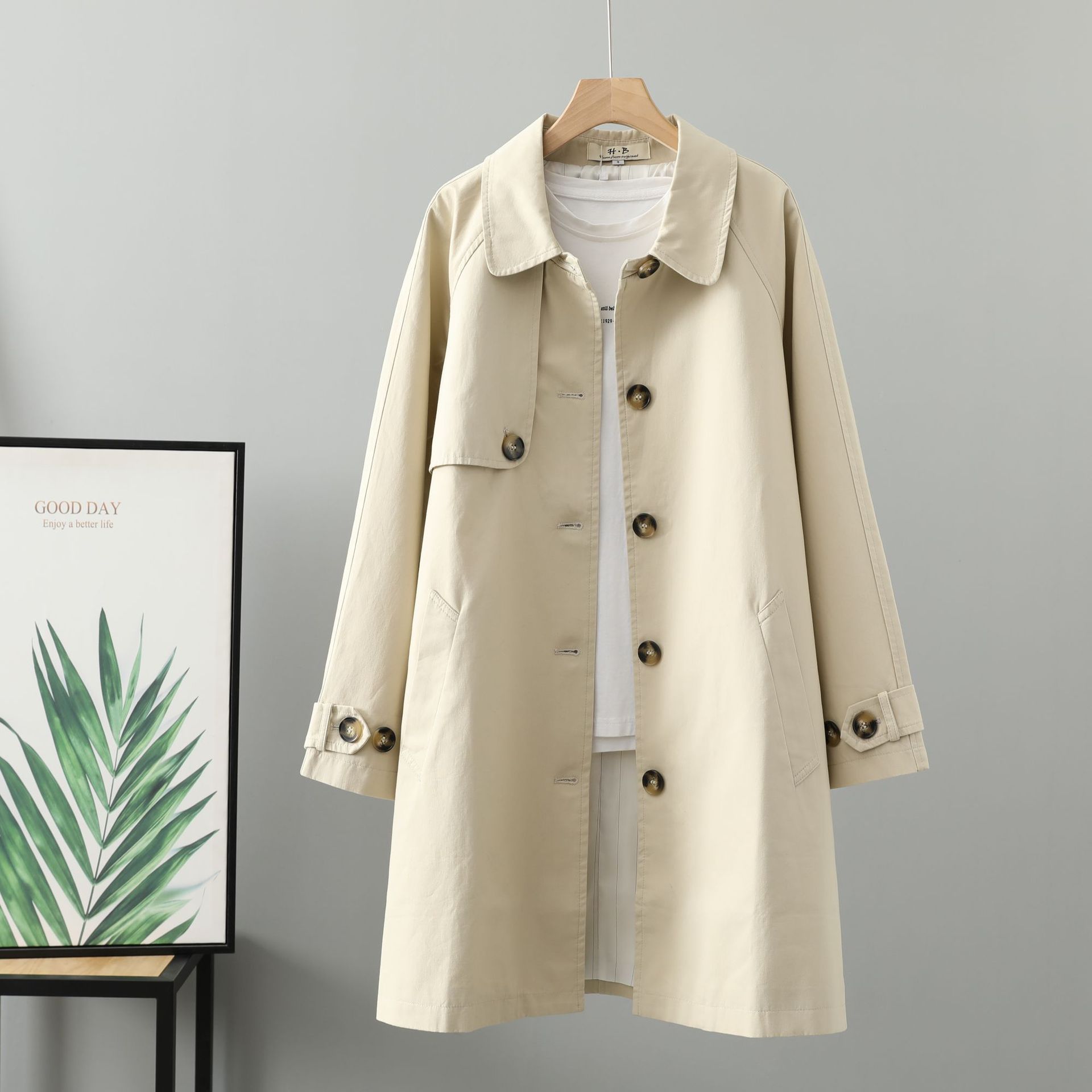 2023 Осенний новый корейский однотонный однобортный Повседневный плащ женский длинный возраст, снижающий оптовую продажу