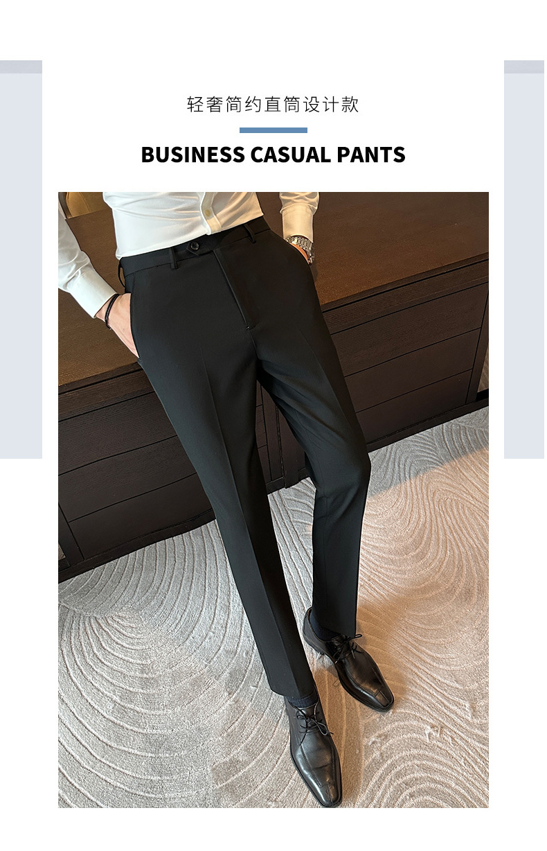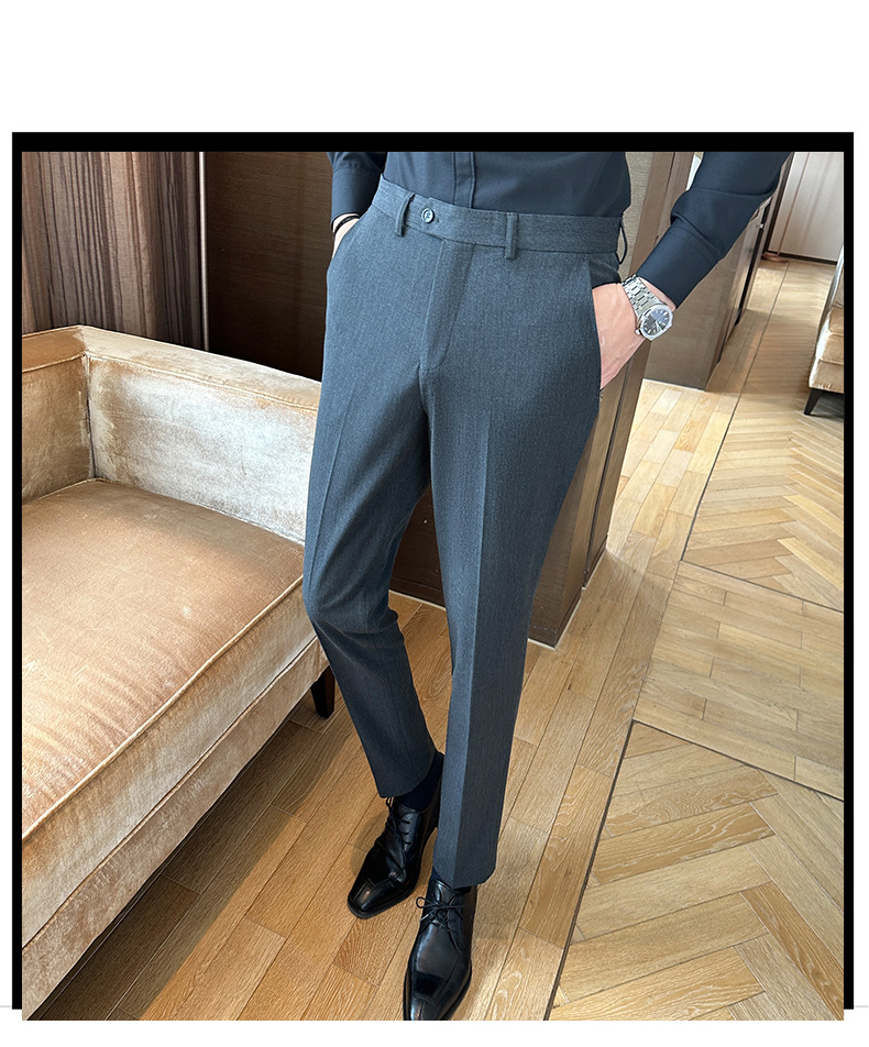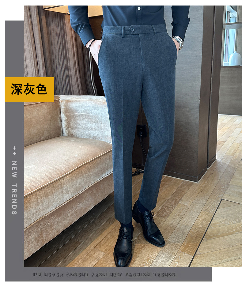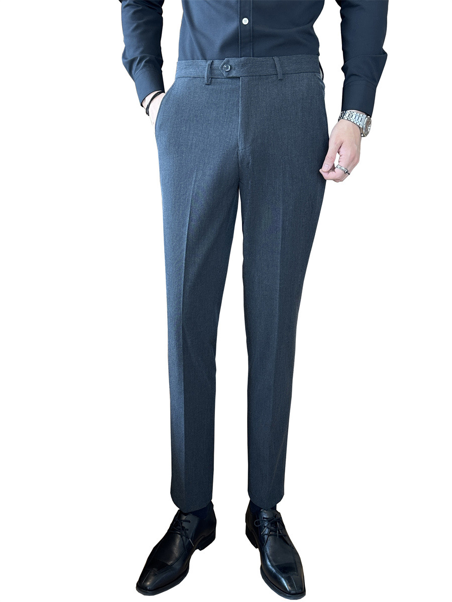 Темно-серые брюки с защитой от морщин, мужские облегающие узкие брюки, деловые рабочие, весенне-осенние, новые повседневные длинные брюки, мужские брюки