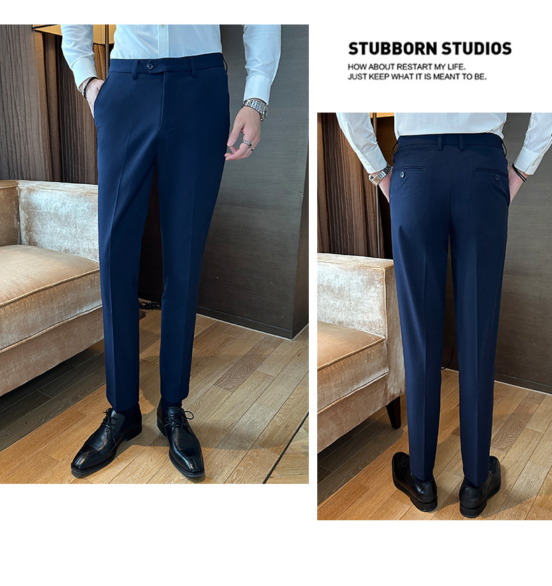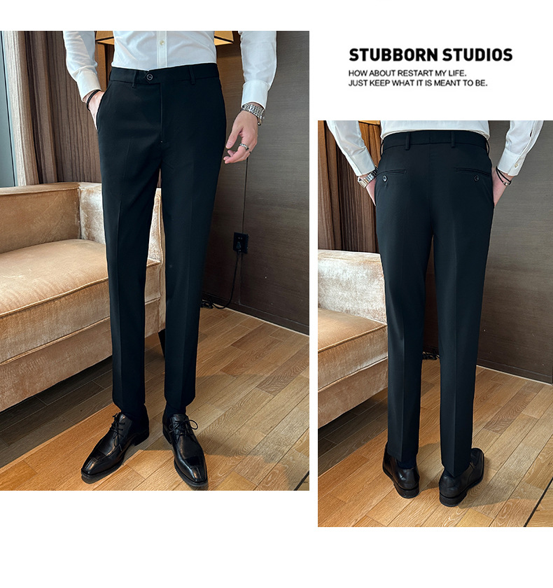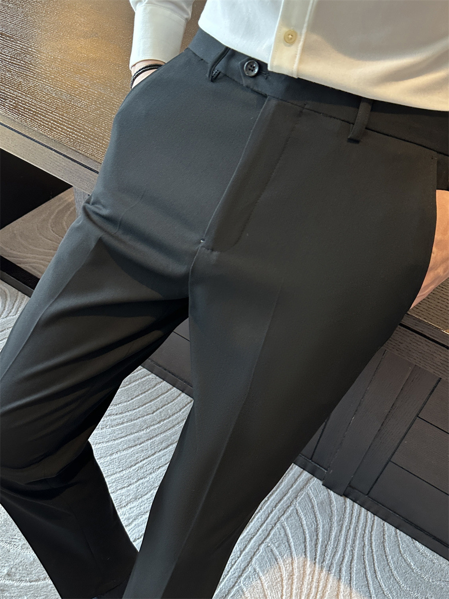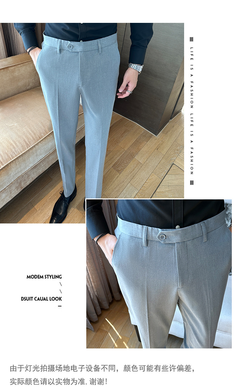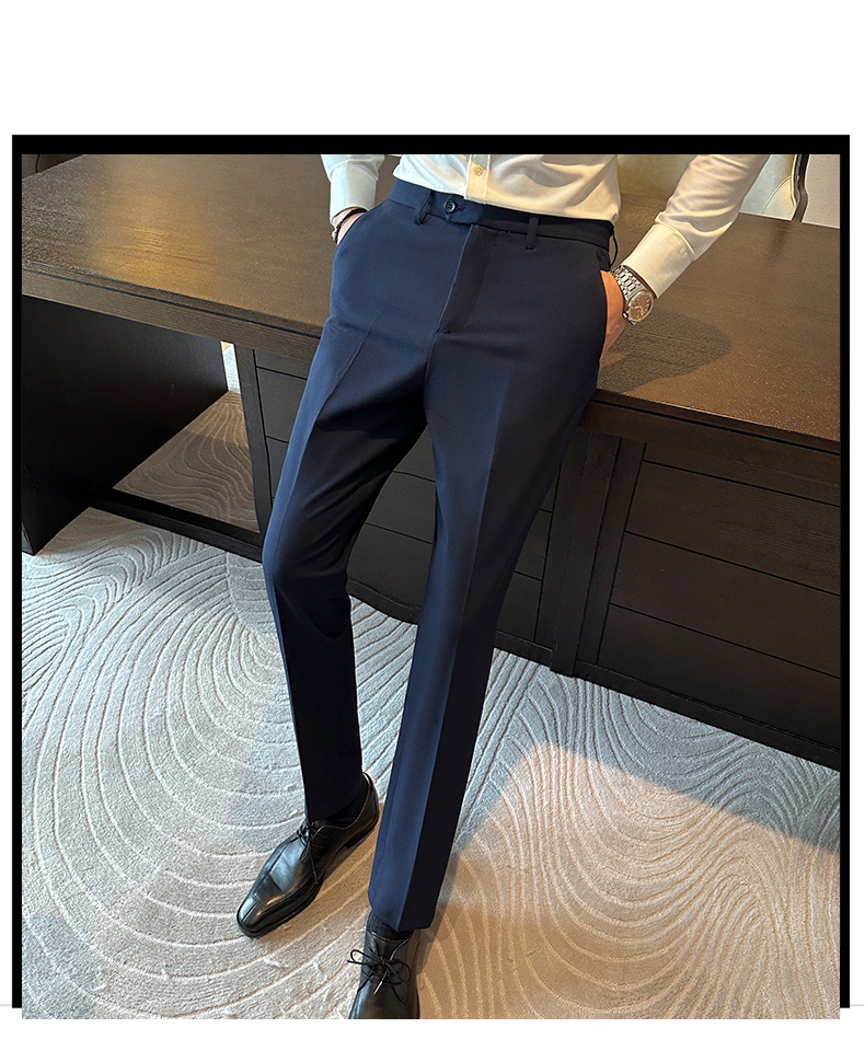 Темно-серые брюки с защитой от морщин, мужские облегающие узкие брюки, деловые рабочие, весенне-осенние, новые повседневные длинные брюки, мужские брюки