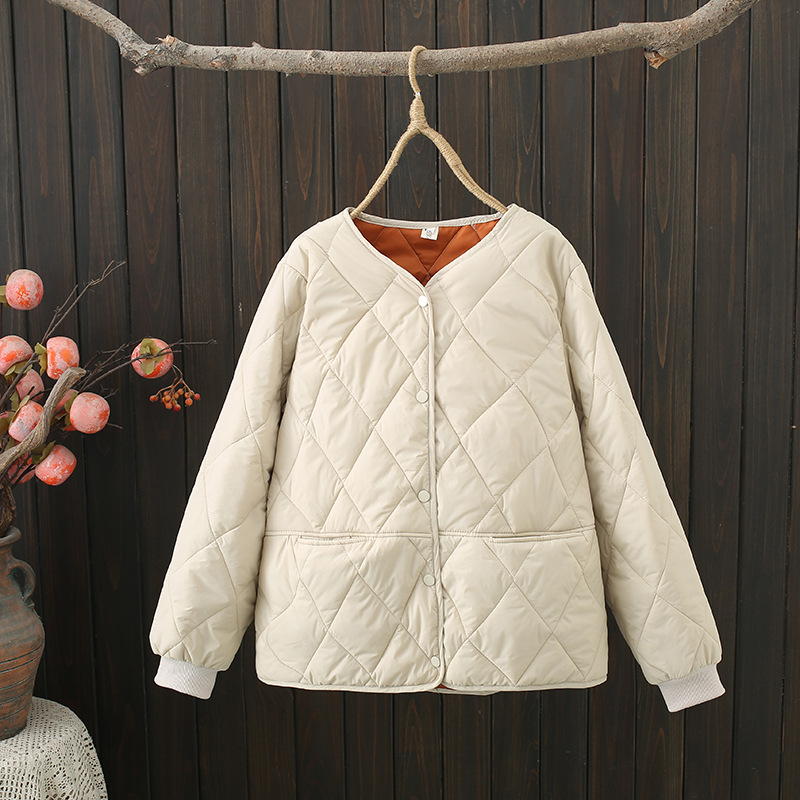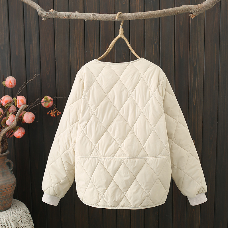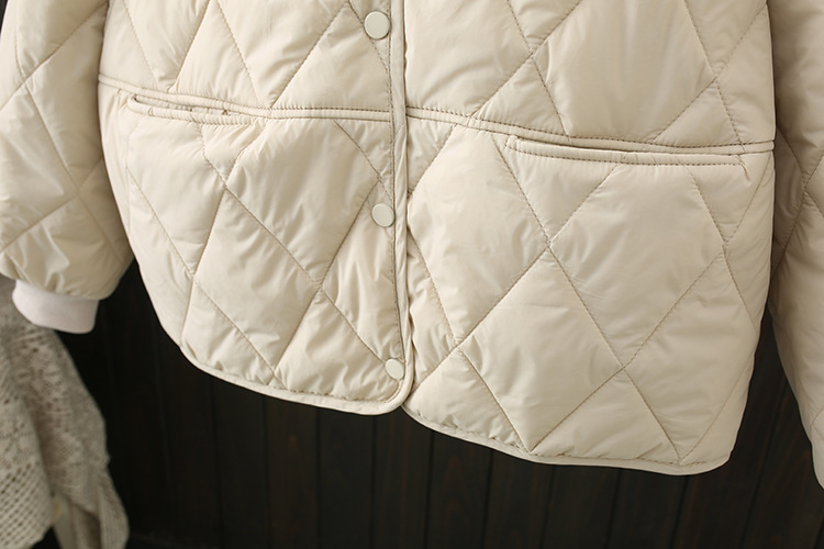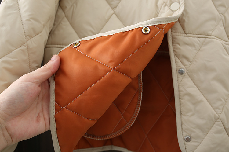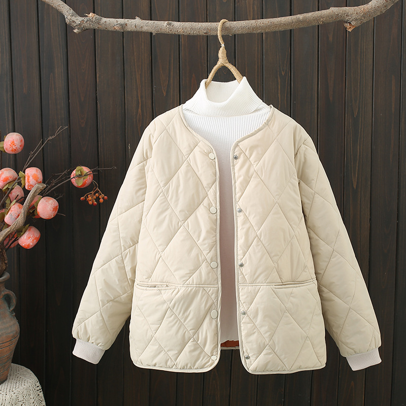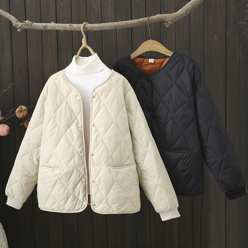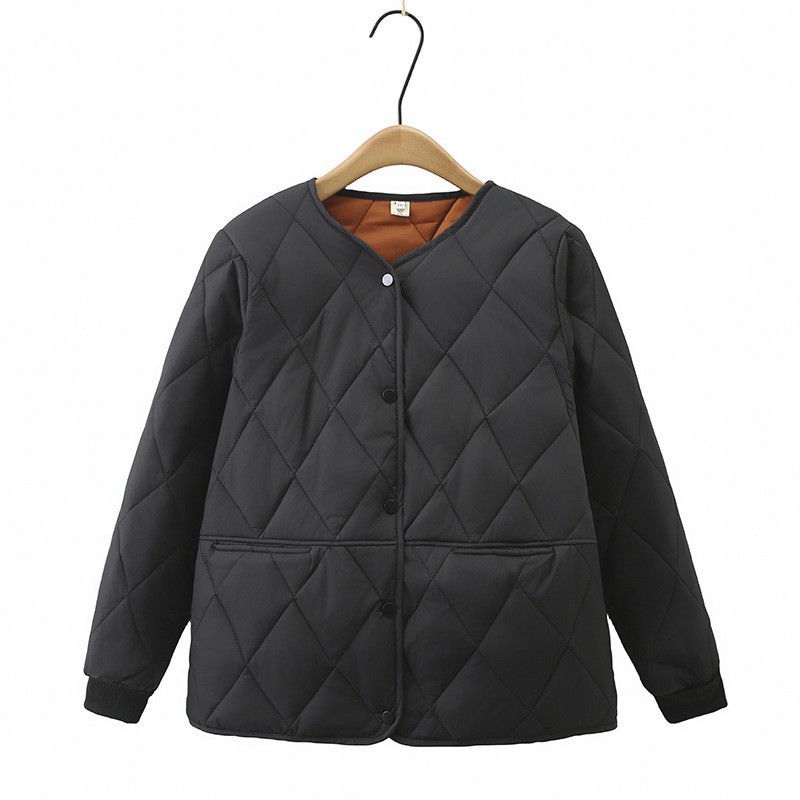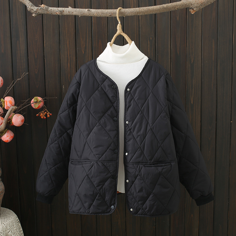 Легкая куртка с хлопковой подкладкой, Женская осенне-зимняя одежда на 2023 год с хлопковой подкладкой для пухленьких девочек, пальто с круглым вырезом и ромбовидной решеткой Joker 9106