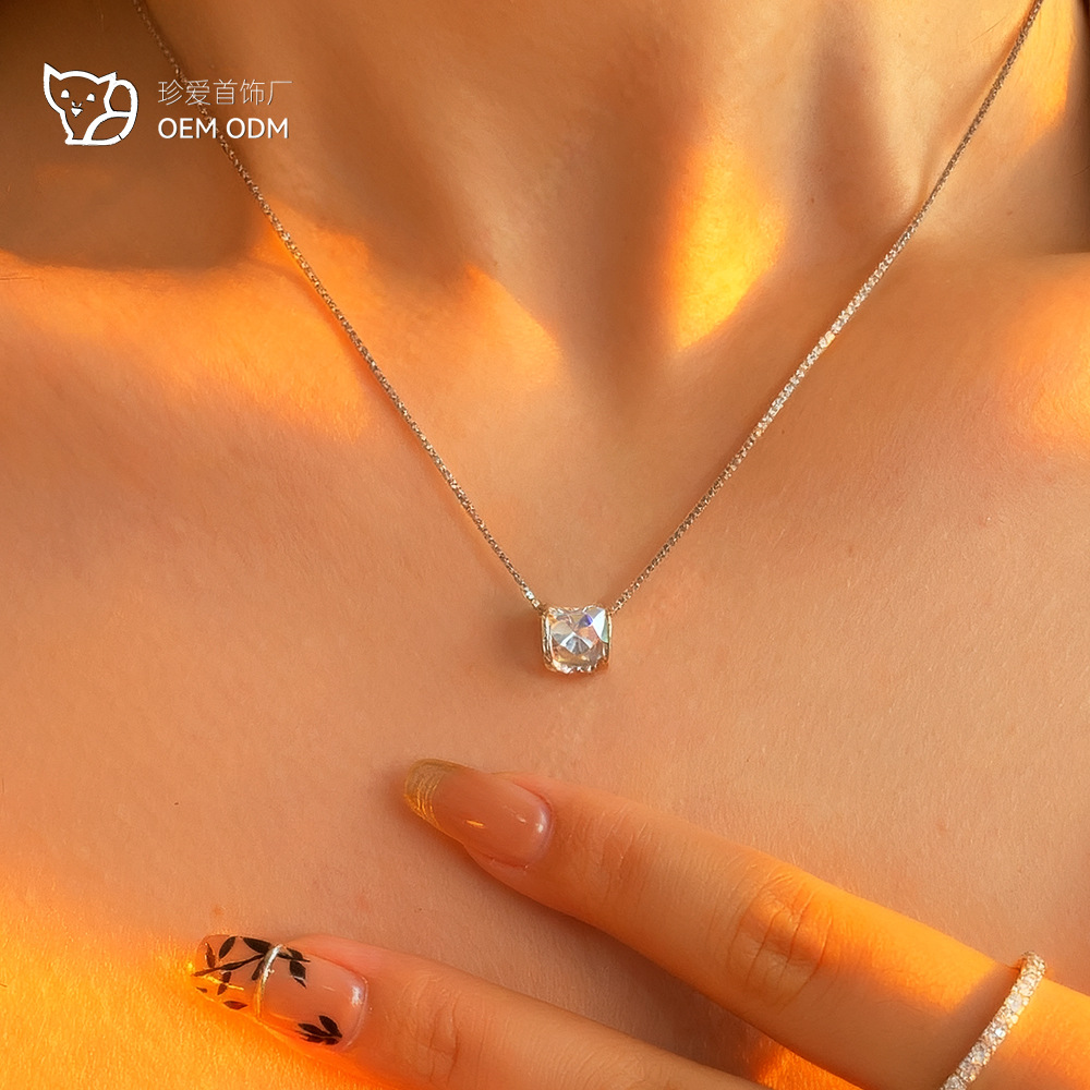 Ожерелье из серебра 925 пробы с муассанитом «Поцелуй ангела» для женщин, цепочка на ключицу, гипоаллергенный кулон, не выцветает, международная сертификация