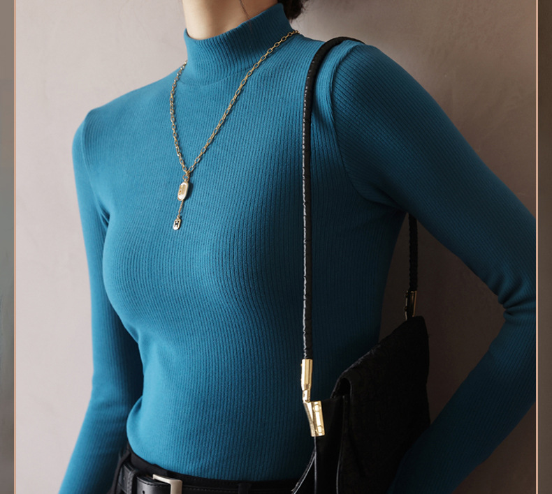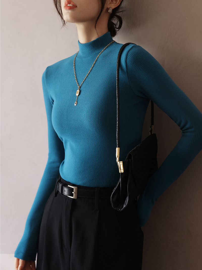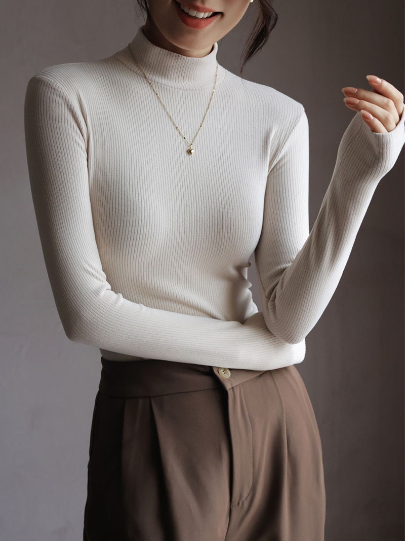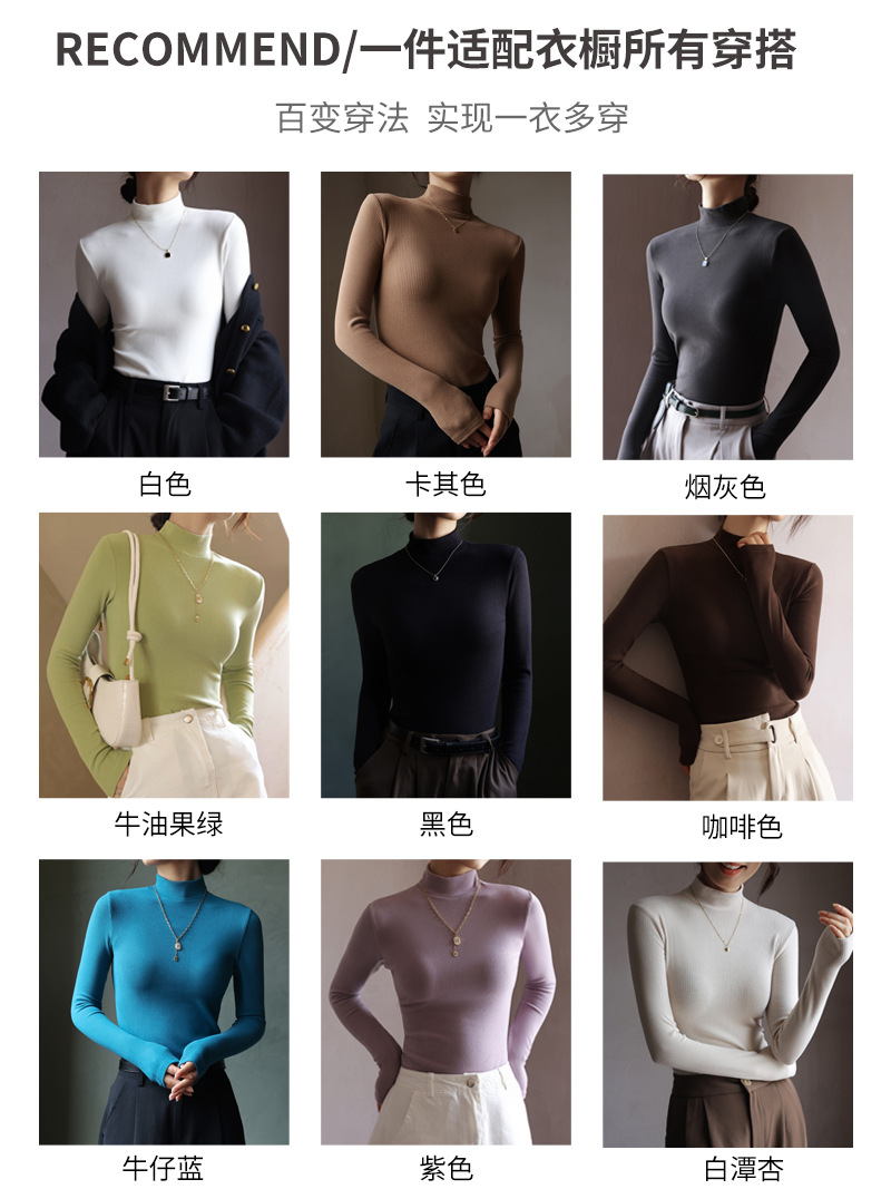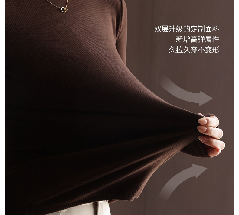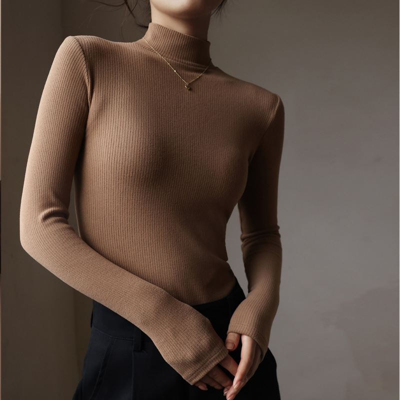 Модернизированная качественная бархатная осенне-зимняя Базовая рубашка с полувысоким воротником и резьбой, Женская облегающая Базовая рубашка с длинным рукавом внутри, топ со средним воротником