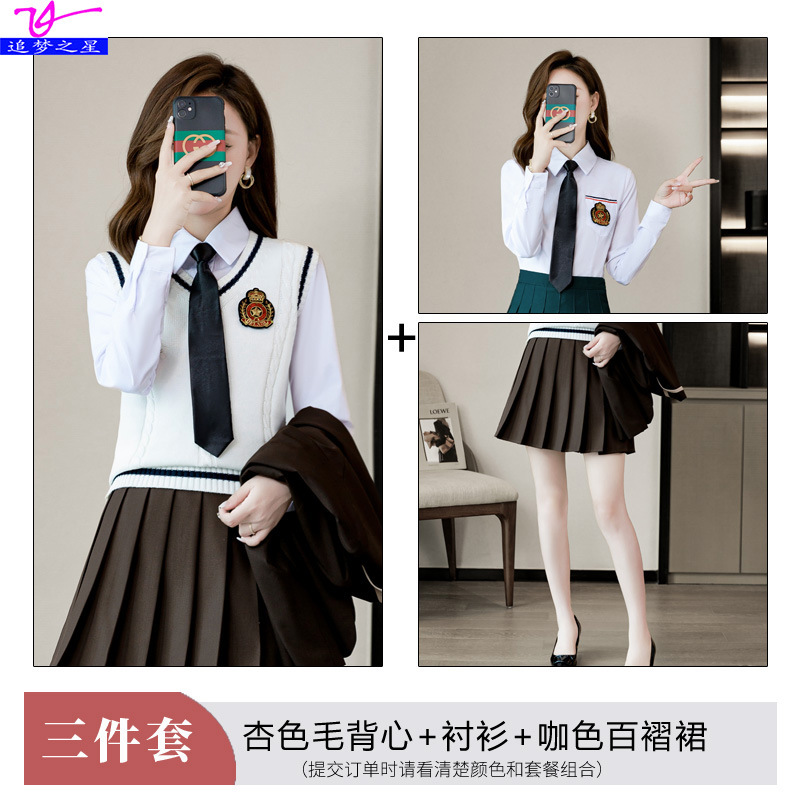 Школьная форма костюм в студенческом стиле 2023 осень новый вязаный жилет без рукавов свитер жилет JK униформа для женщин