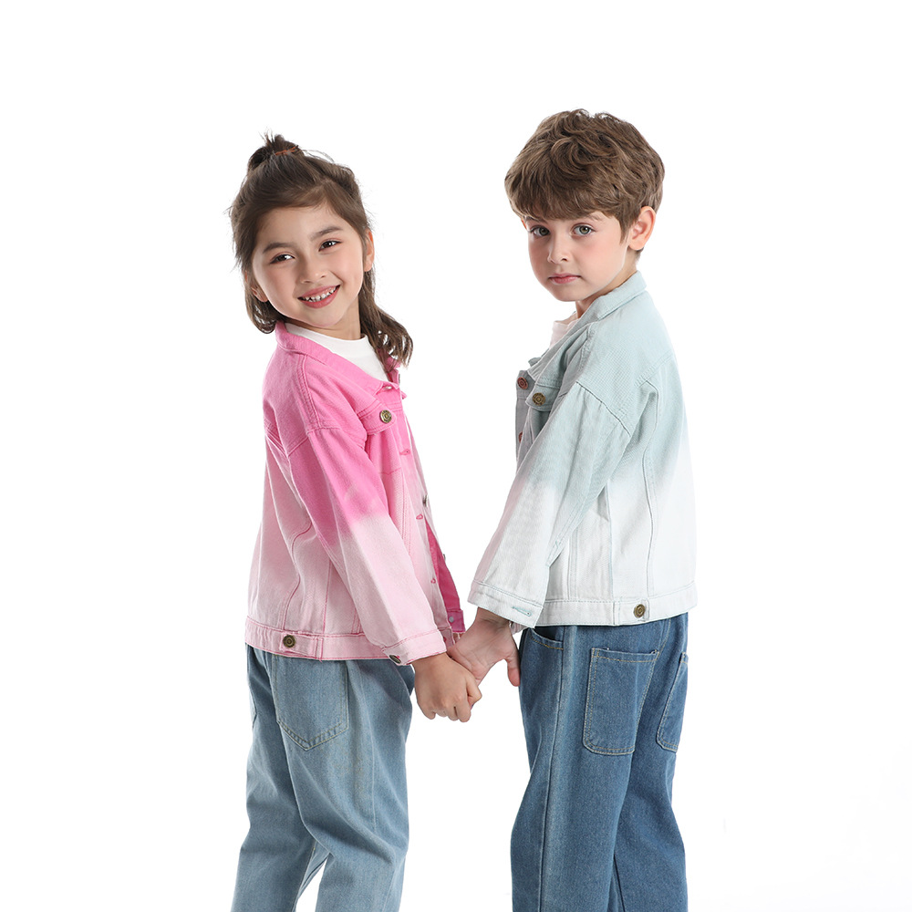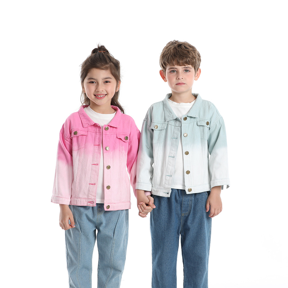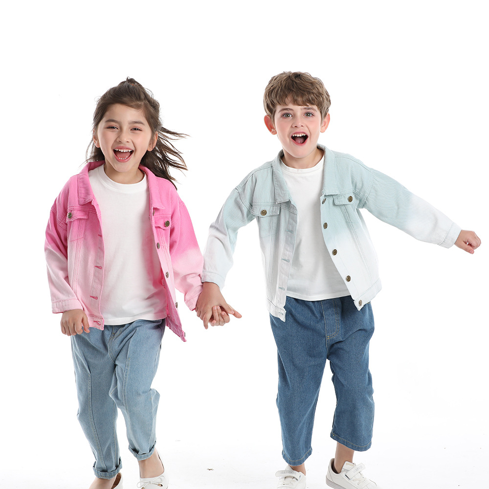 Детская одежда для внешней торговли для мальчиков и девочек, осеннее пальто, новое повседневное джинсовое пальто ярких цветов для мальчиков, весна и осень