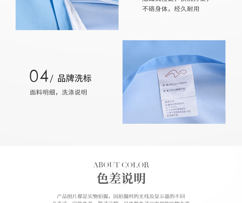 Пододеяльник: 200*230 см, Простыни: 240*245 см, Наволочка: 48*74 см*2