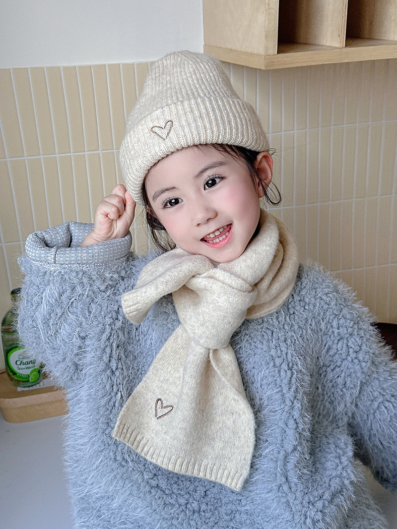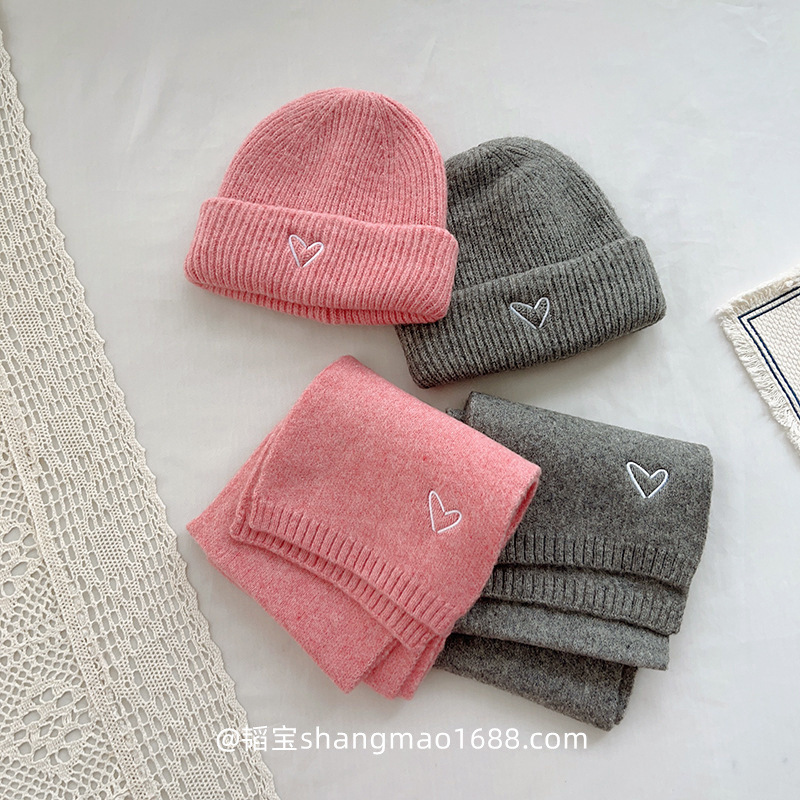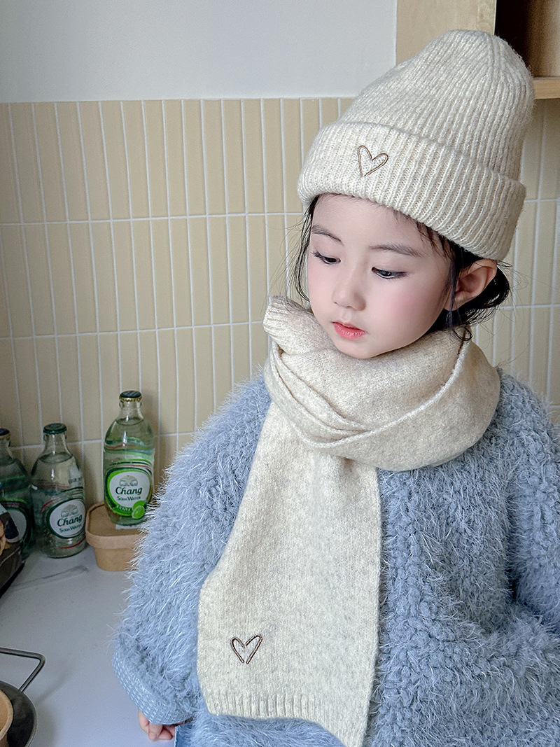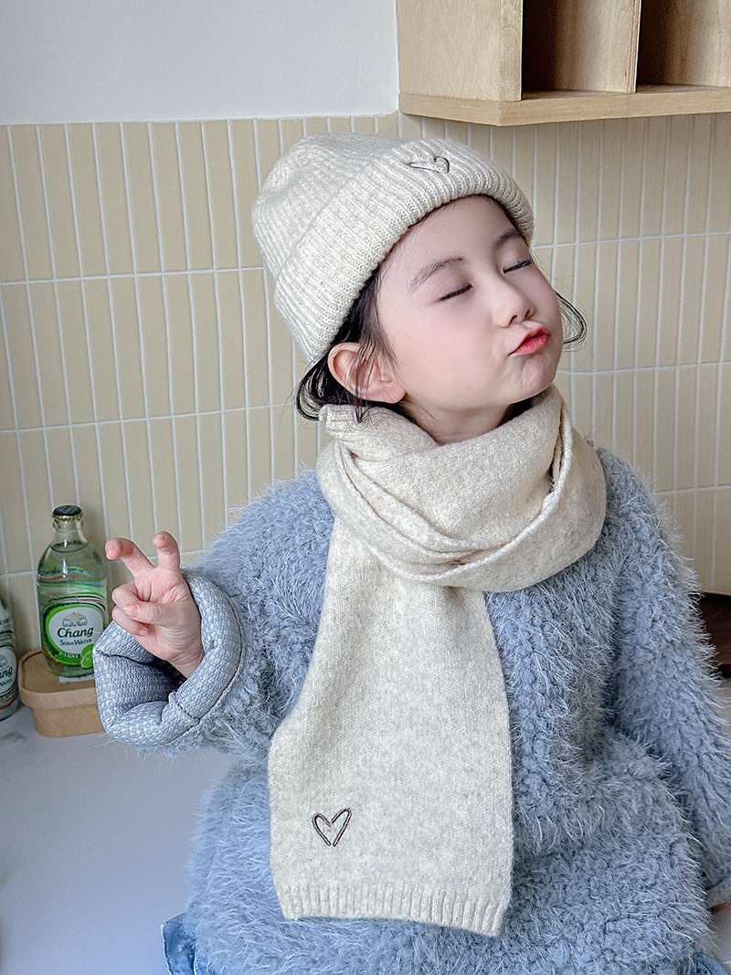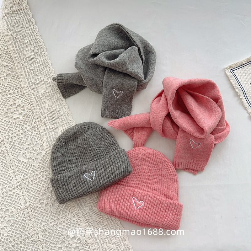 Корейская детская шапка и шарф с вышивкой любви, комплект из 2 предметов для мальчиков и девочек, осенне-зимний однотонный Универсальный костюм, теплый Детский костюм