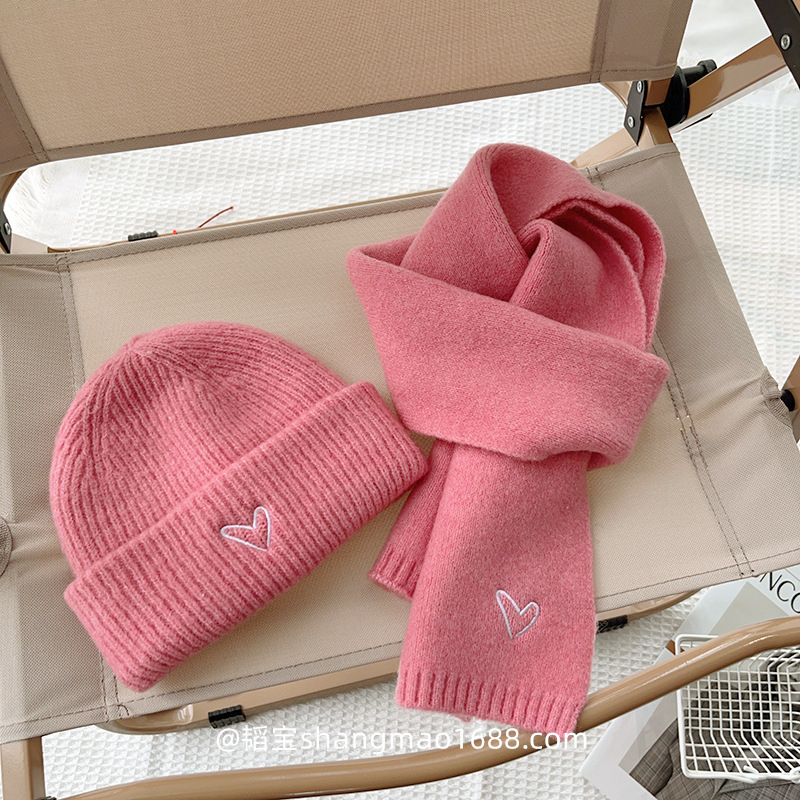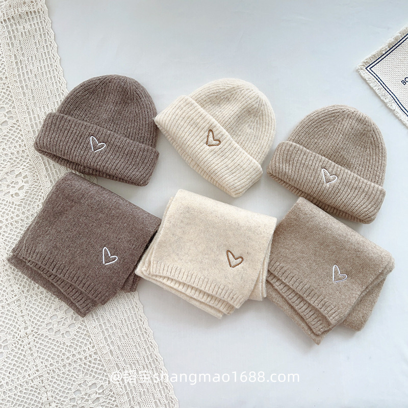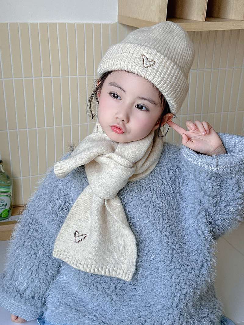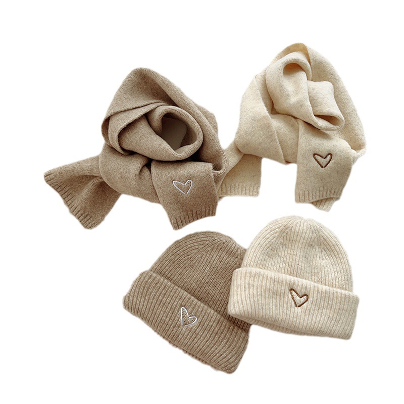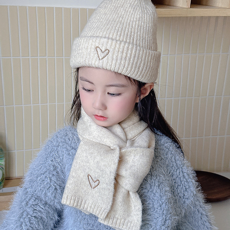 Корейская детская шапка и шарф с вышивкой любви, комплект из 2 предметов для мальчиков и девочек, осенне-зимний однотонный Универсальный костюм, теплый Детский костюм