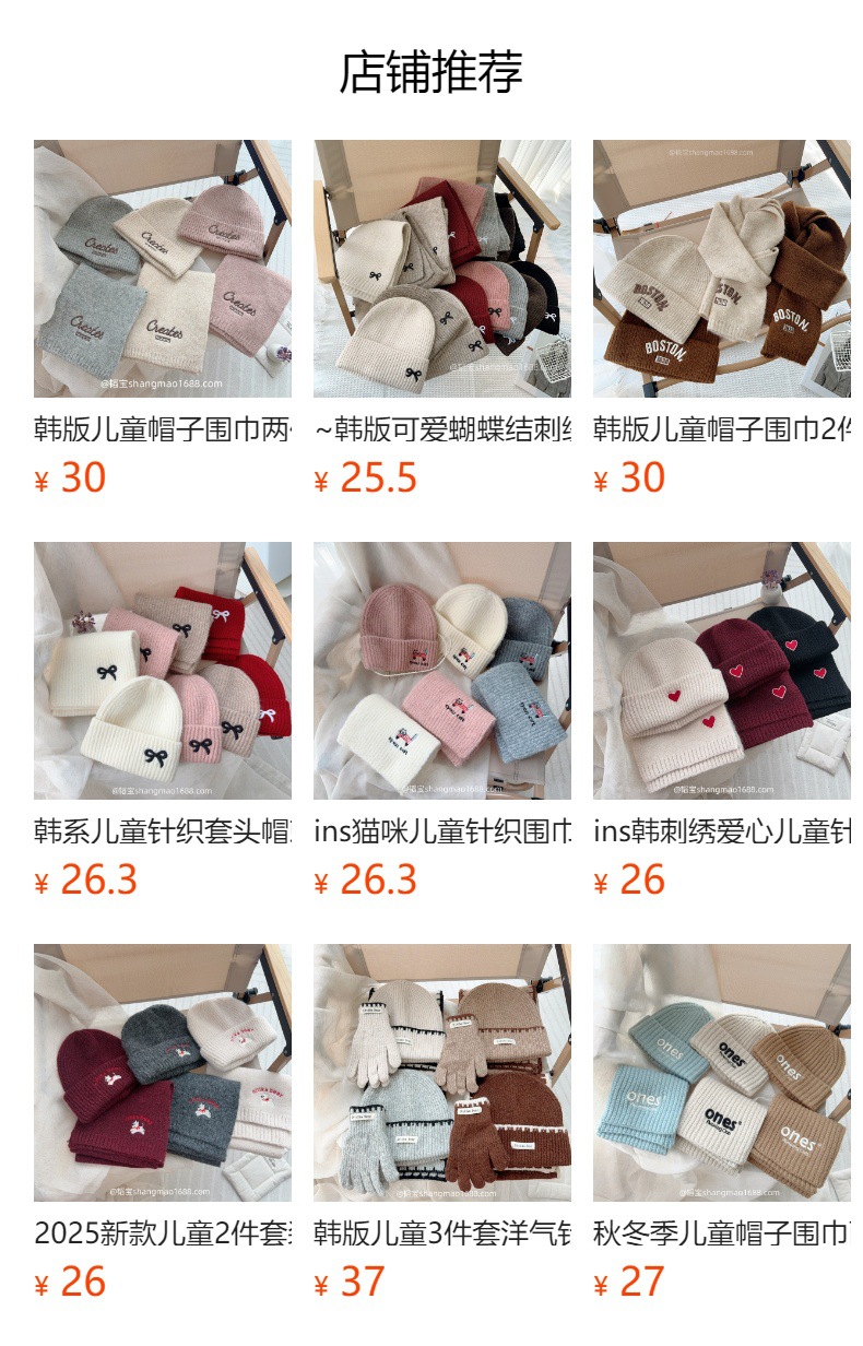 帽子约48-52cm (3-8岁)围巾约126*16cm