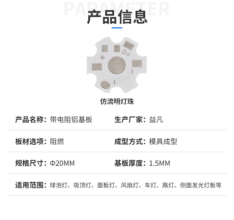 Резистор на шестиугольной алюминиевой плате 20 мм, имитация люминесцентной пластины, готовый к отгрузке с завода, оптом