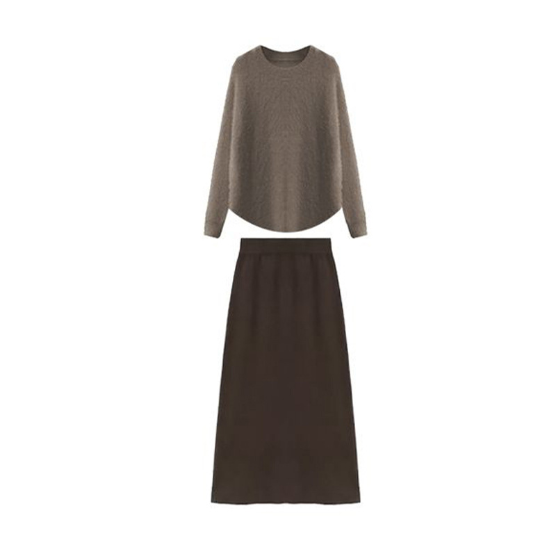 Одежда для ранней осени 2025: новый комплект в стиле «допаминовый чай» для полных женщин, облегающее платье-костюм из двух предметов для женщин