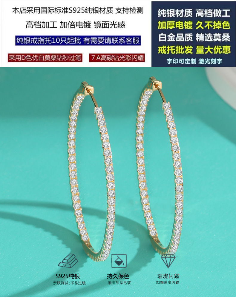 925 серебряные серьги из муассанита, Европейская и американская трансграничная мода, высокое чувство, полные бриллиантовых серег, женские серьги из муассанита оптом