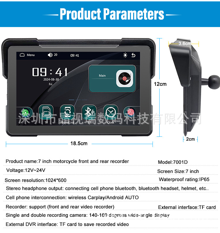 7inch Мотоцикл без рекордера; 7inch Мотоцикл с передним и задним рекордером
