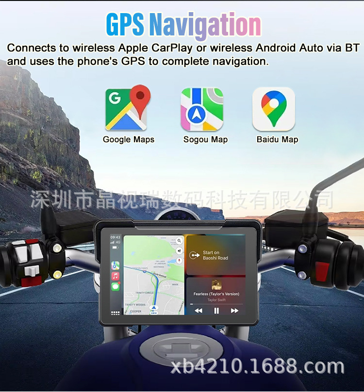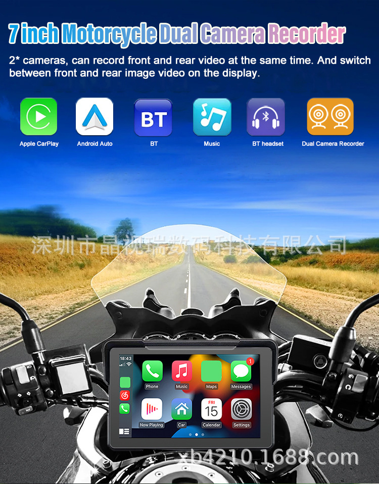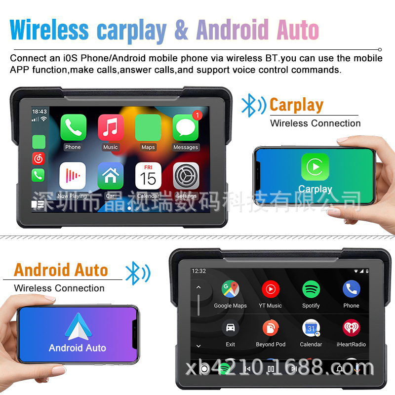 7-дюймовый сенсорный экран открытый внешний портативный мотоцикл посвященный IPX7 водонепроницаемый дисплей навигации CarPlay