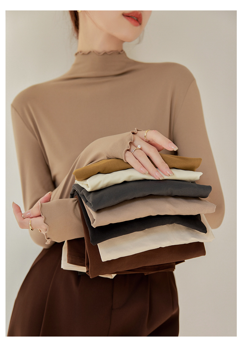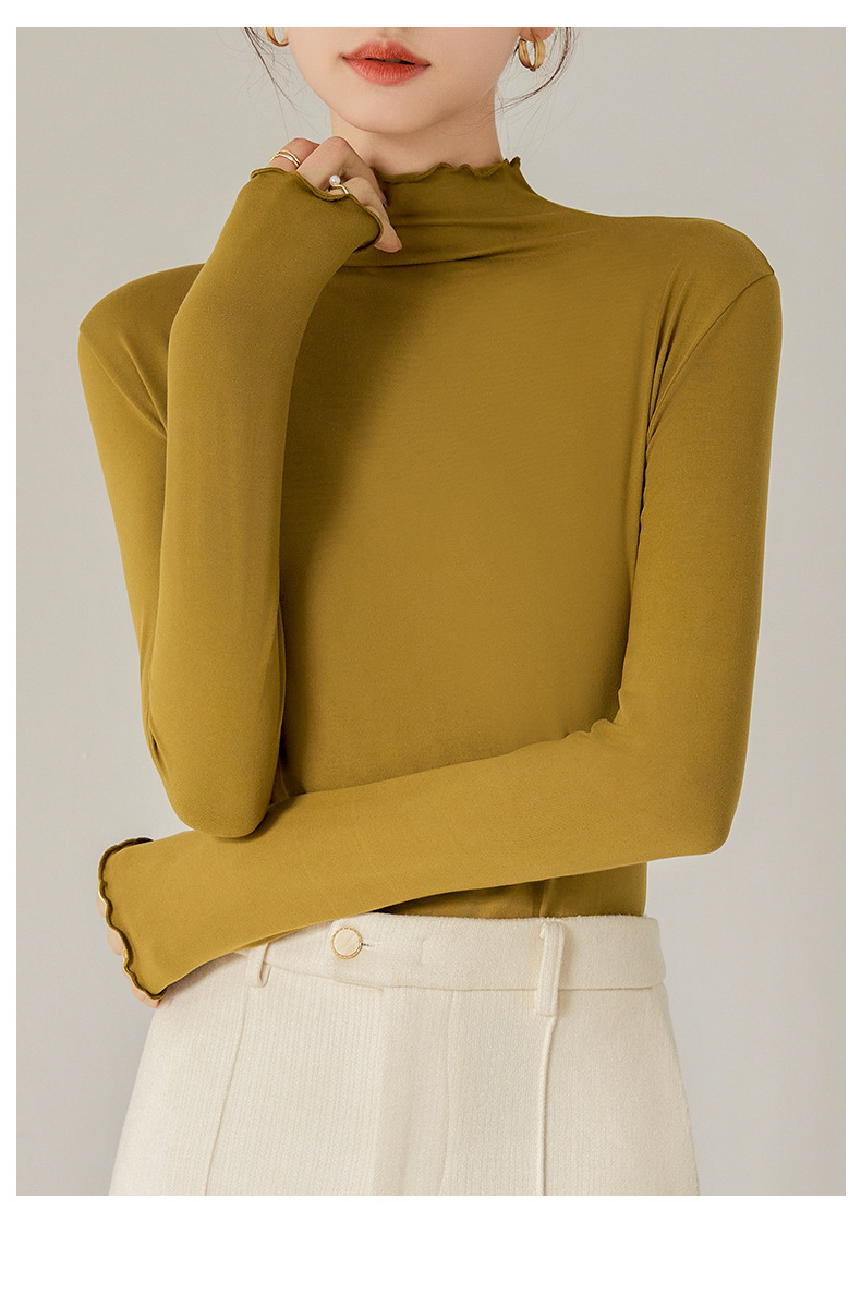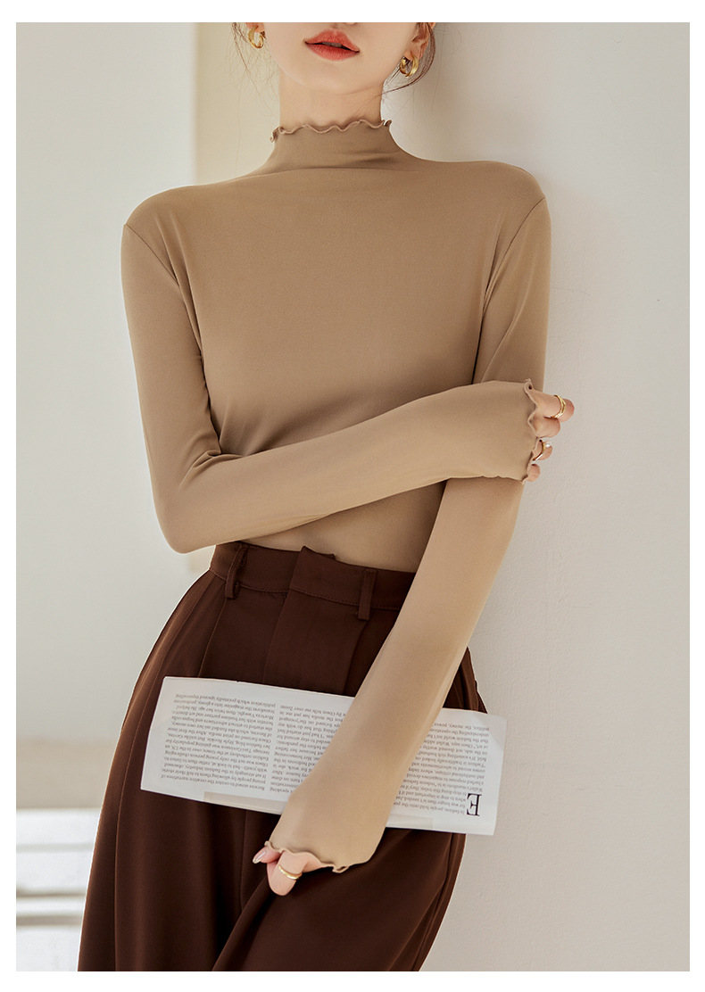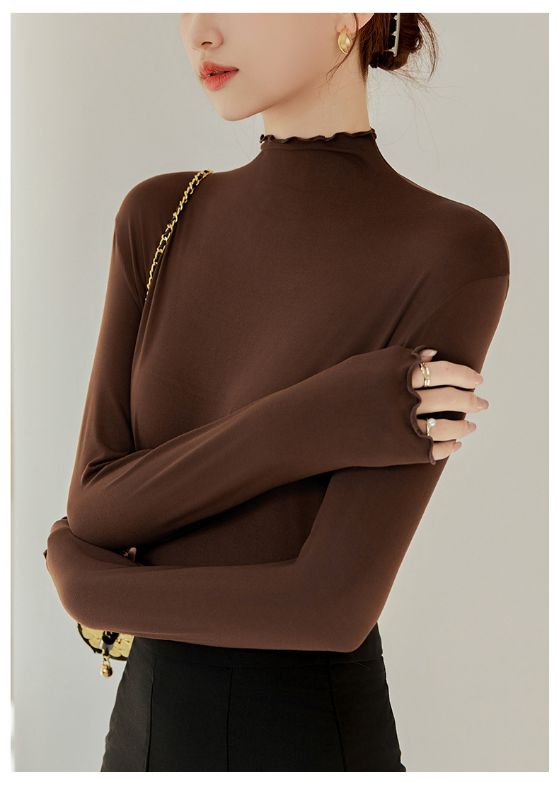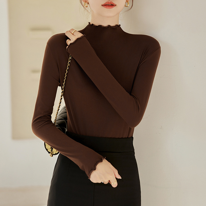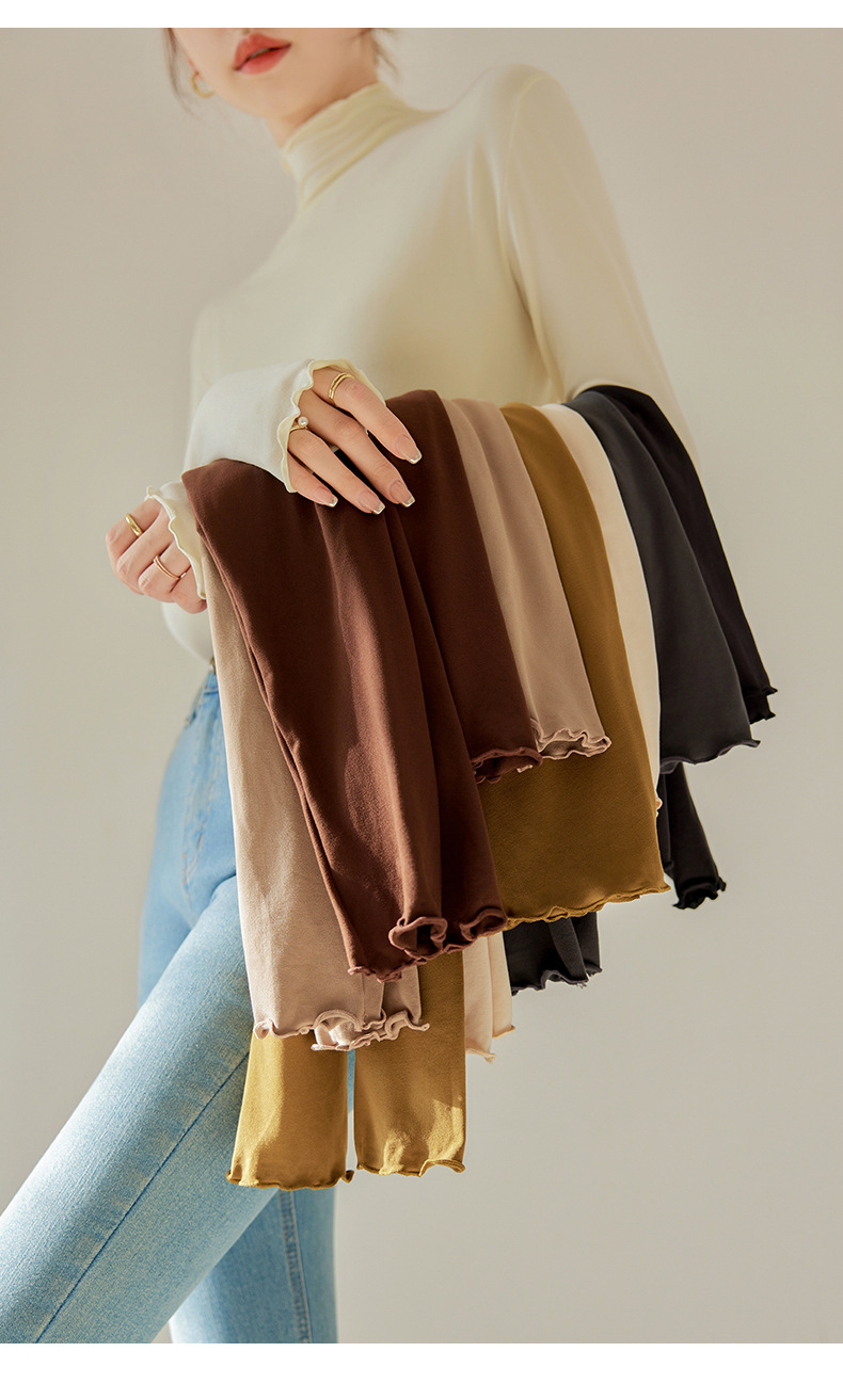 Тщательно отобранный новый осенне-зимний топ с рюшами для женщин, новый осенне-зимний топ с маслом кокоса, облегающий топ с длинными рукавами для ношения под одеждой.