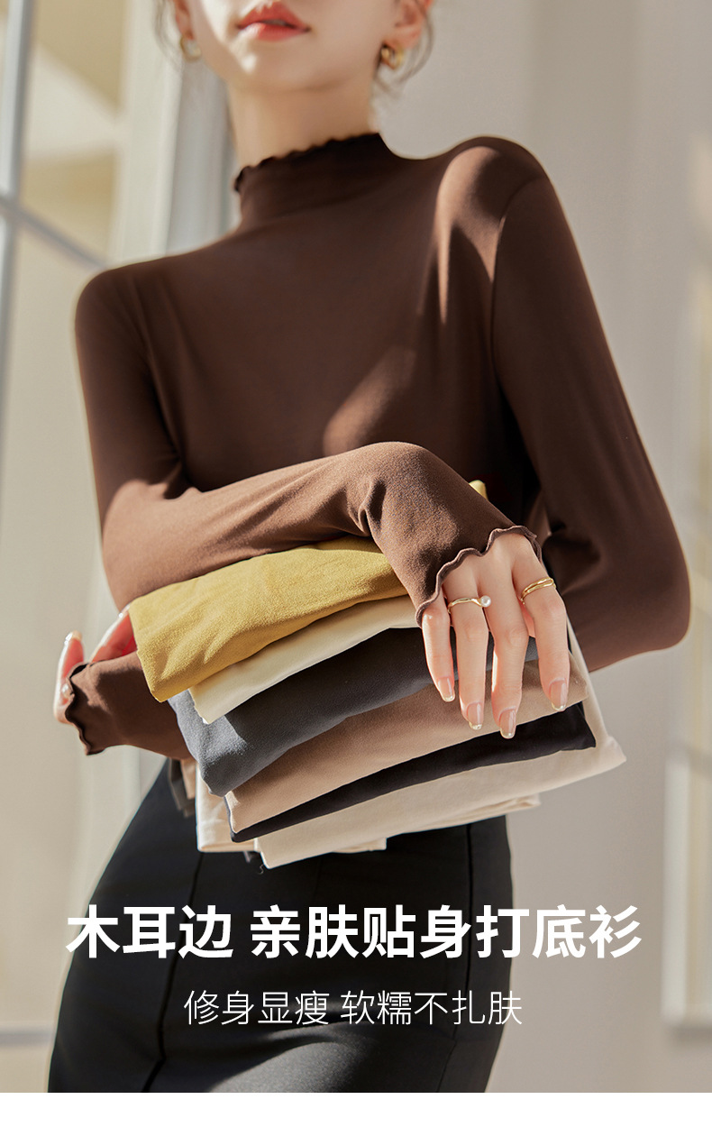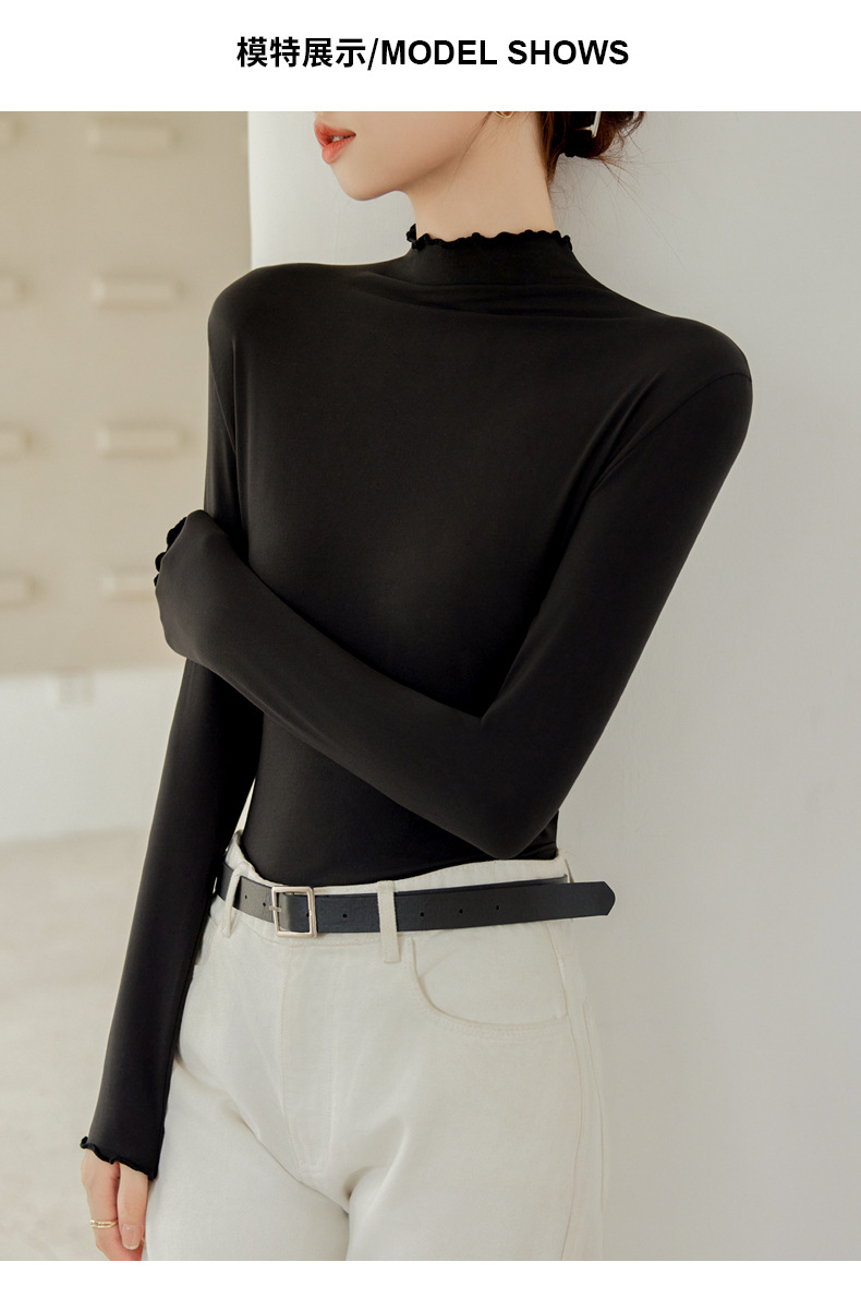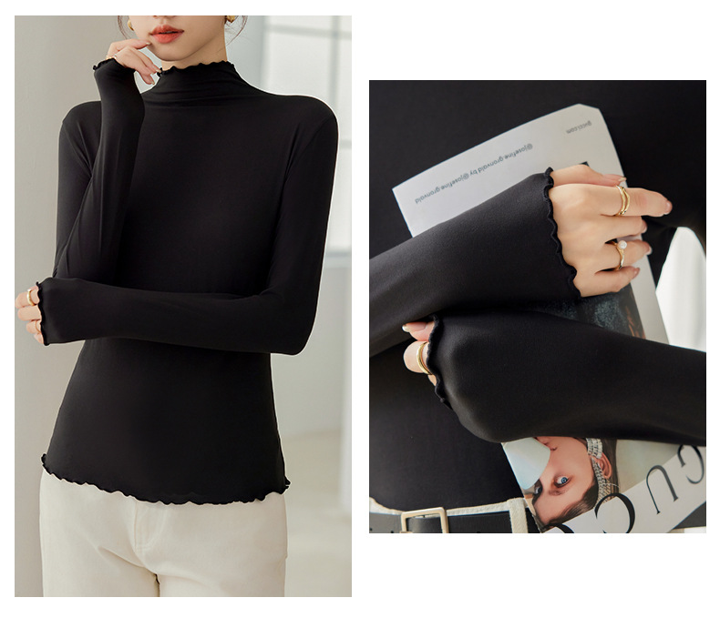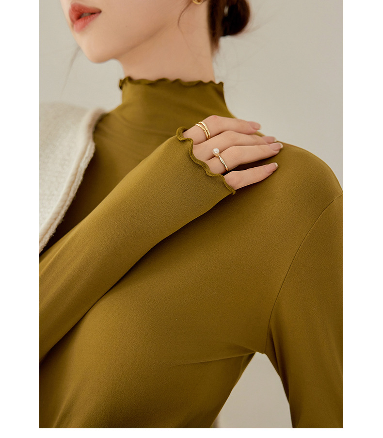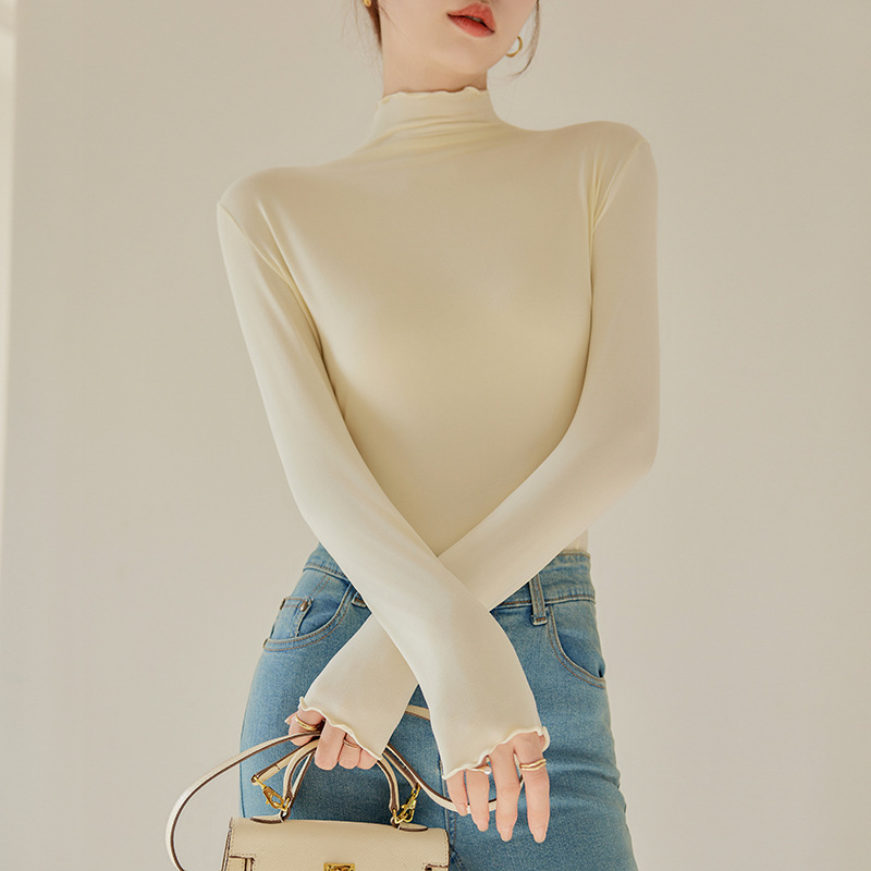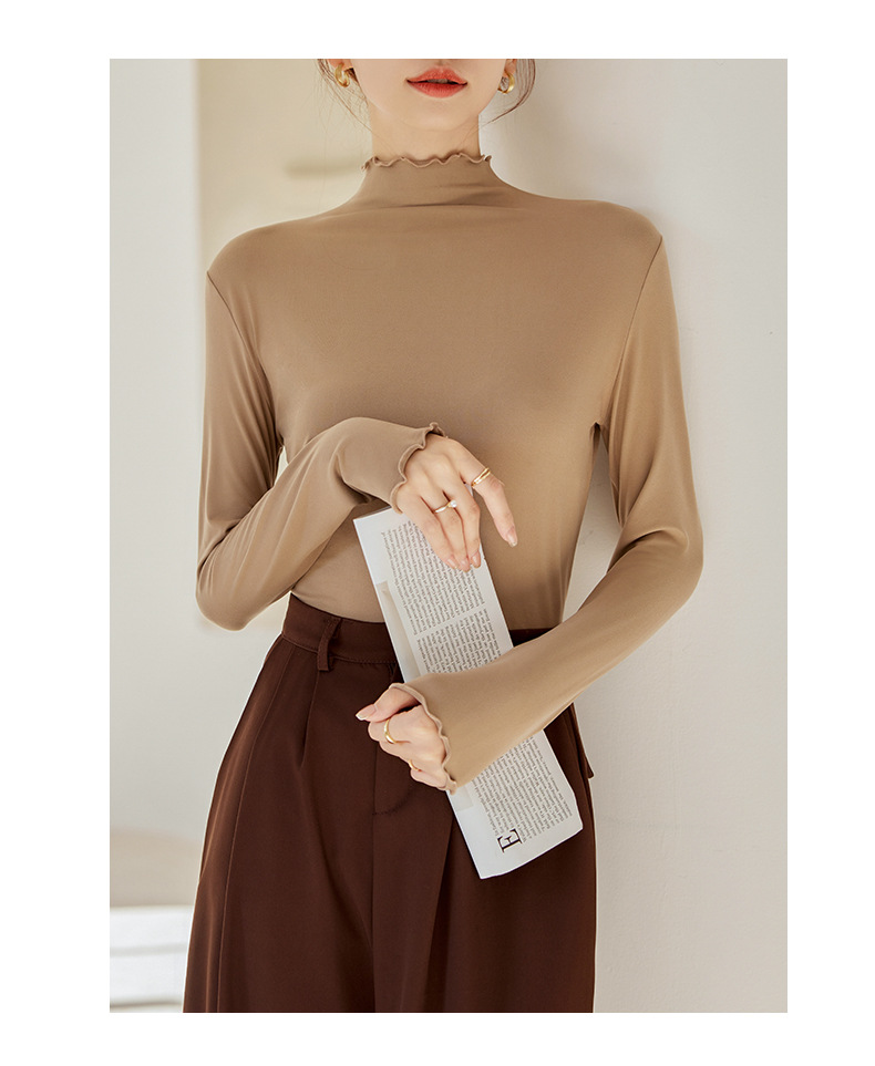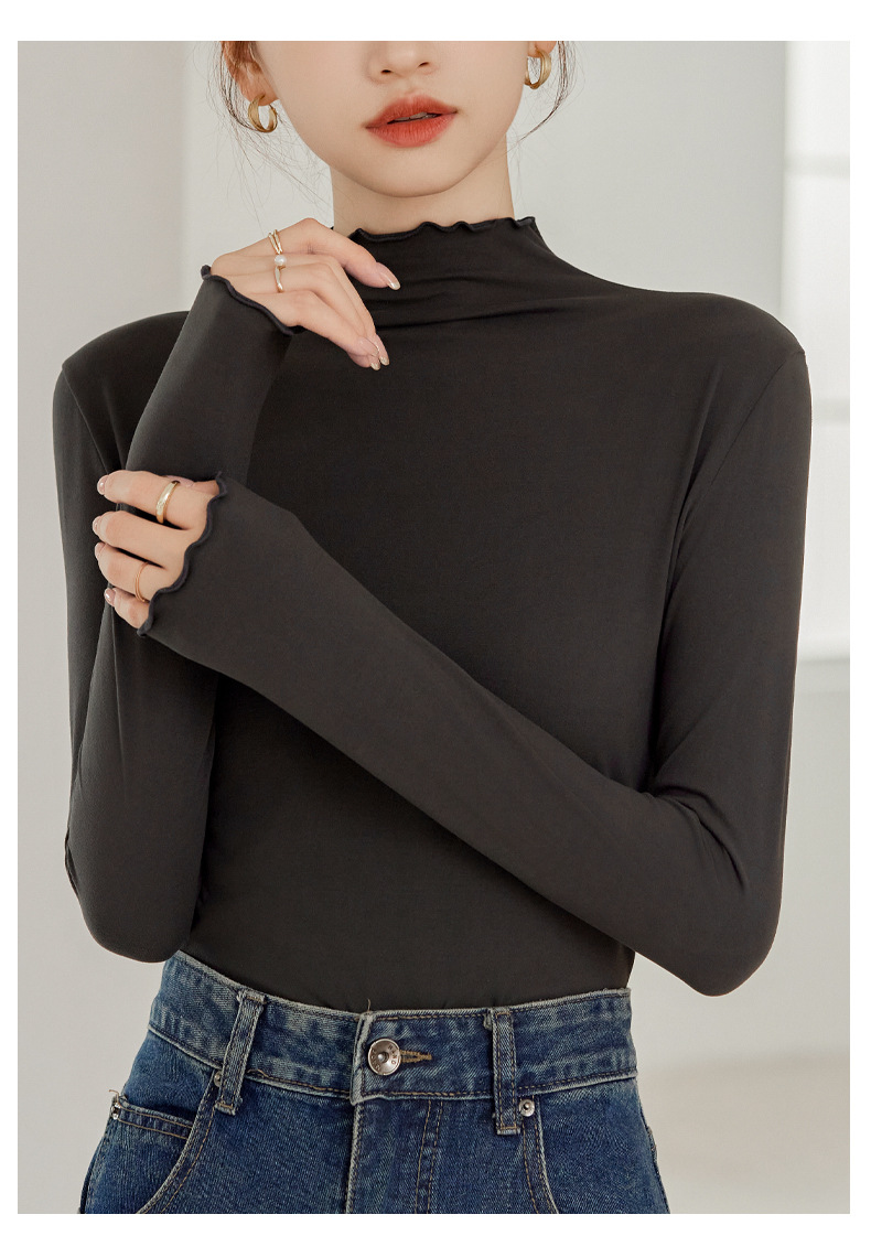 Тщательно отобранный новый осенне-зимний топ с рюшами для женщин, новый осенне-зимний топ с маслом кокоса, облегающий топ с длинными рукавами для ношения под одеждой.