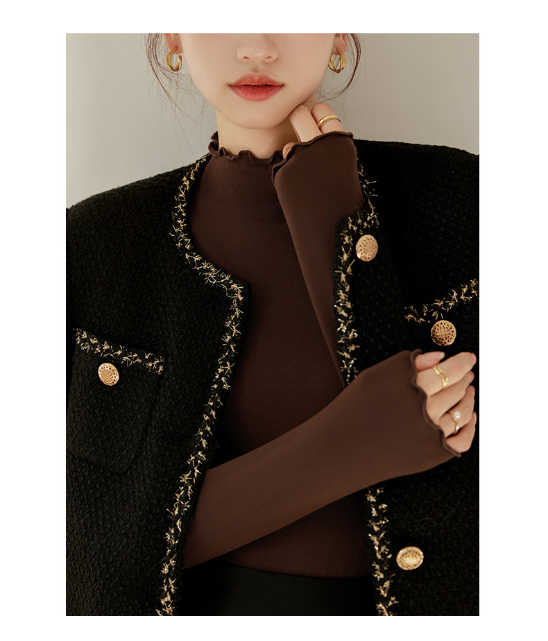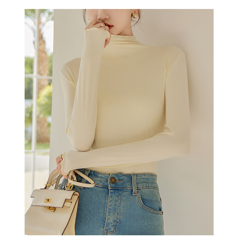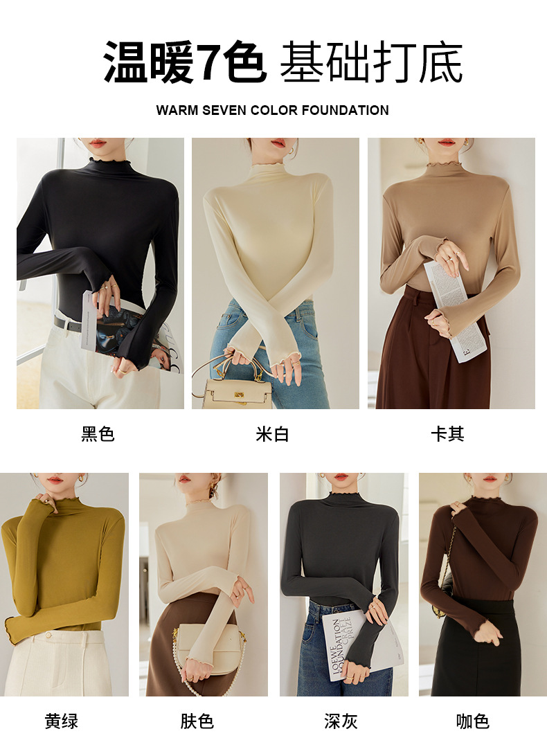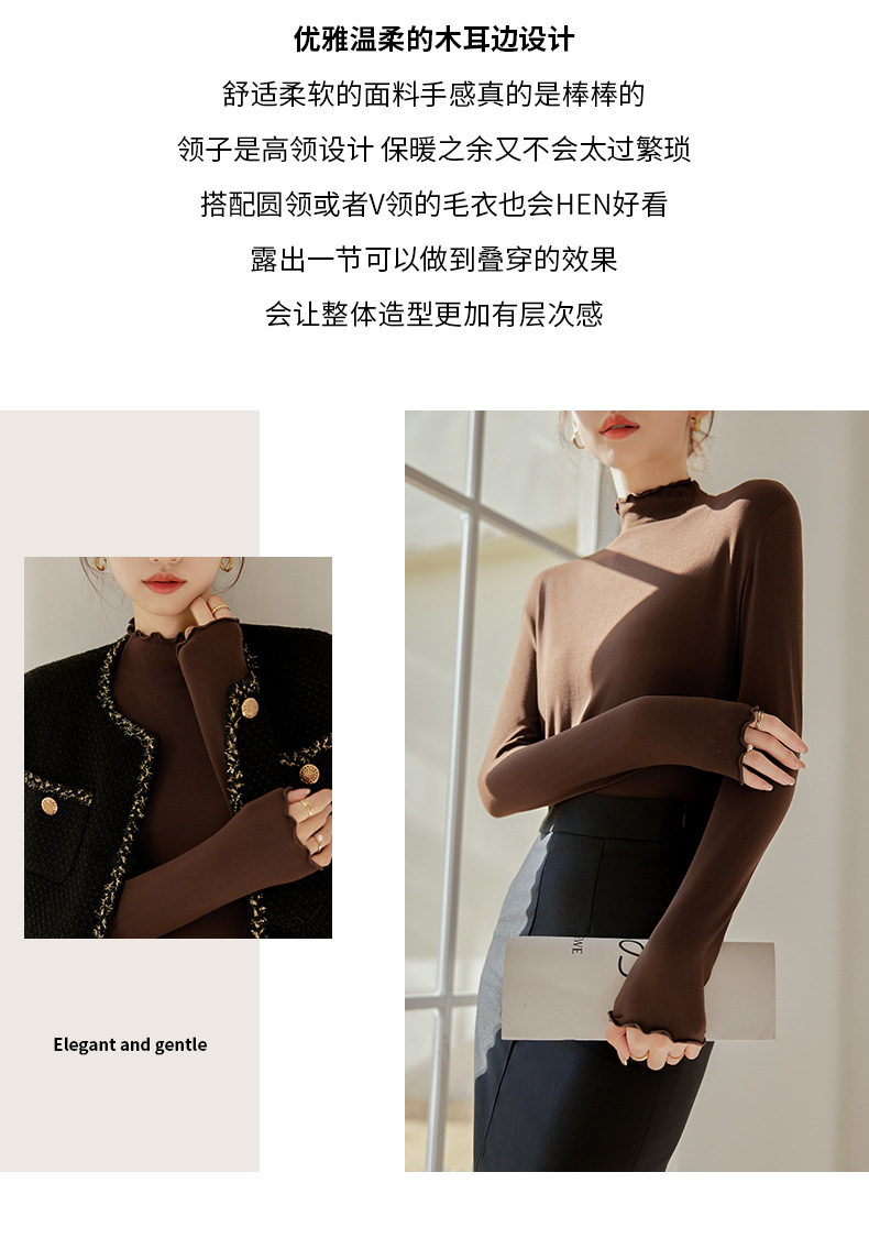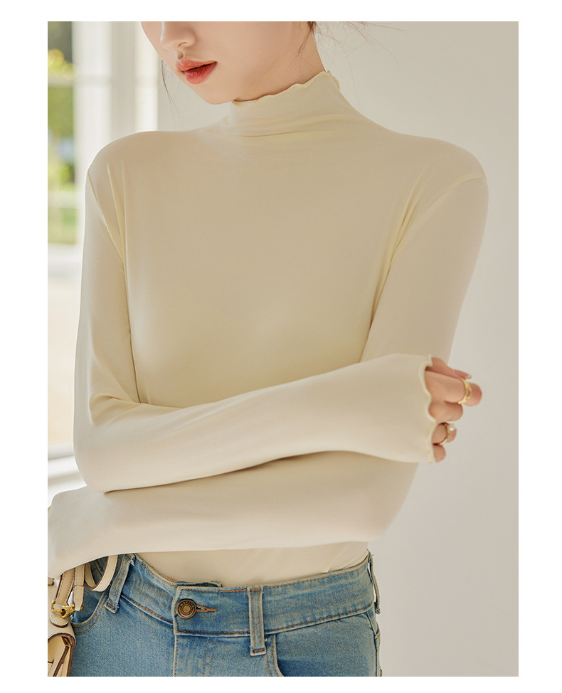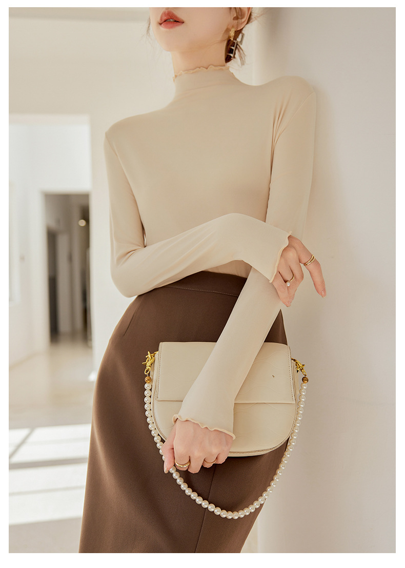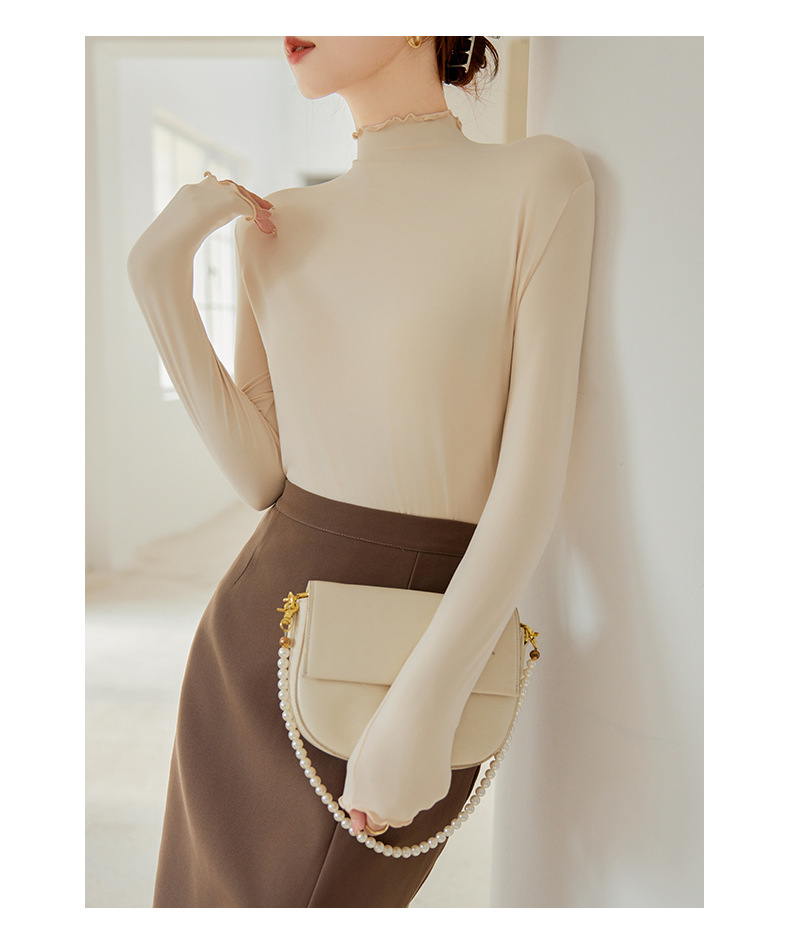 Тщательно отобранный новый осенне-зимний топ с рюшами для женщин, новый осенне-зимний топ с маслом кокоса, облегающий топ с длинными рукавами для ношения под одеждой.