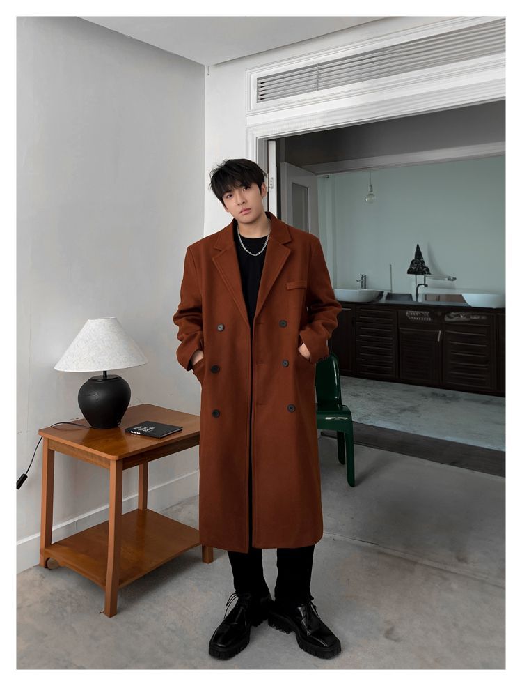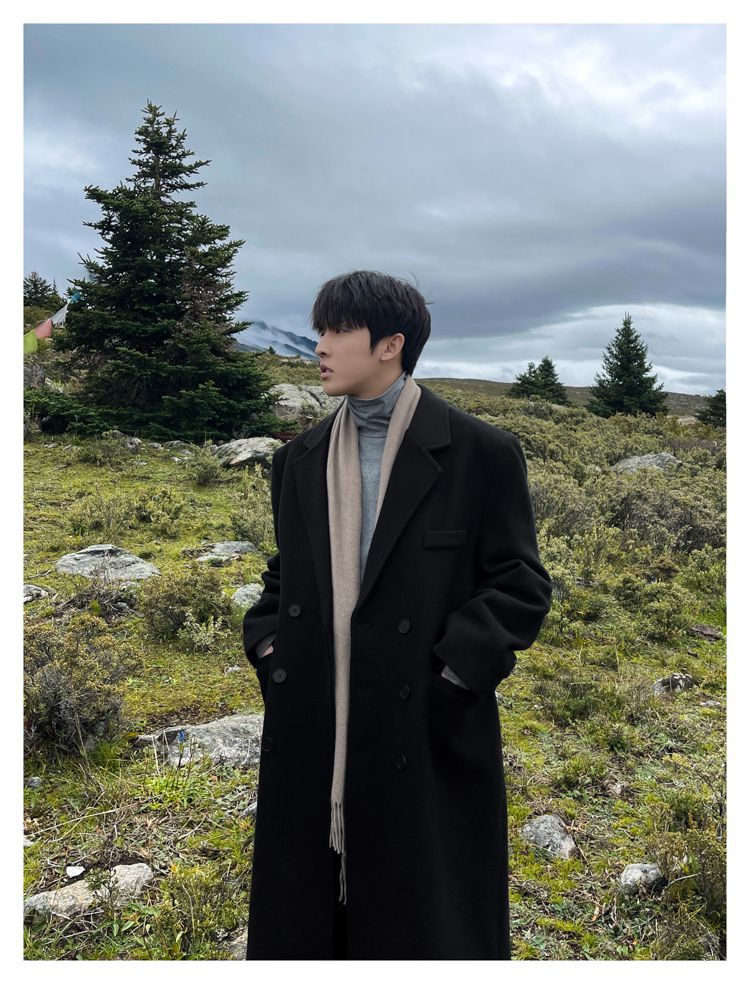 Взрывное зимнее шерстяное пальто мужское корейское платье до колен средней и длинной ветровки свободная шерстяная куртка костюм