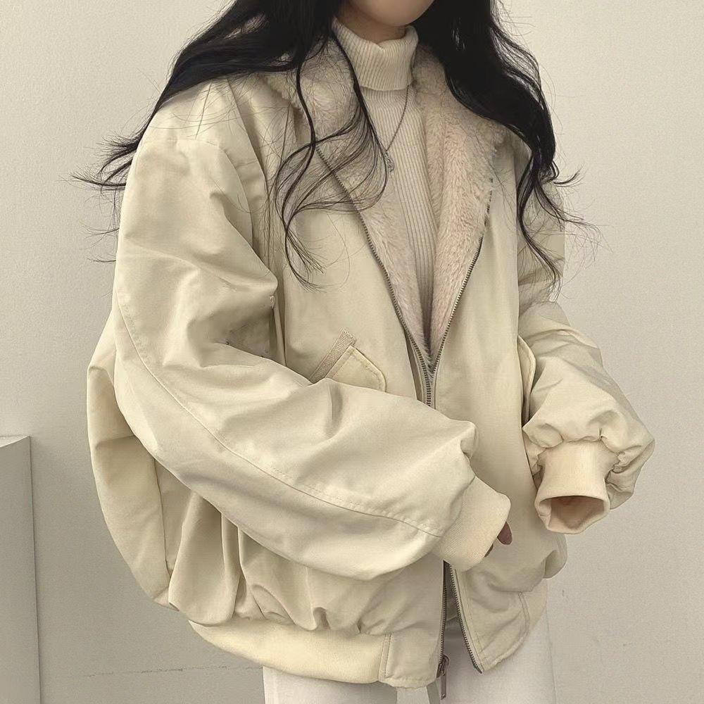 Пальто из шерсти ягненка, Женская осенне-зимняя утолщенная Двусторонняя стеганая куртка на флисовой подкладке, зимняя новая куртка на хлопковой подкладке, толстая стеганая куртка с капюшоном, Топ