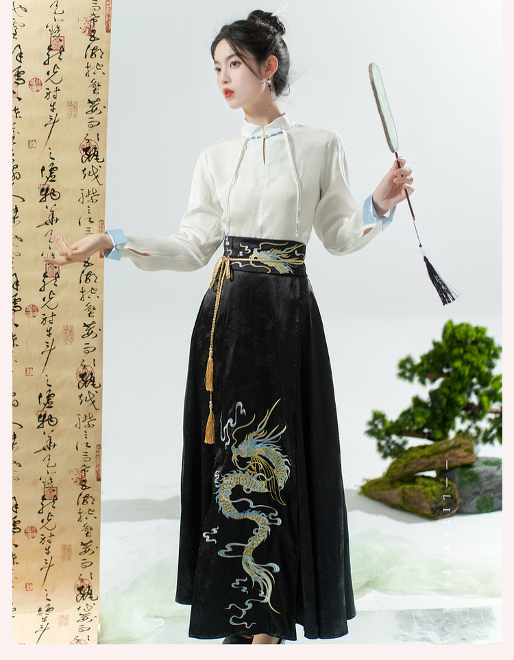Новый китайский стиль, простой вышитый Топ, улучшенная эластичная талия, Высококачественная Женская юбка-жилет с талией