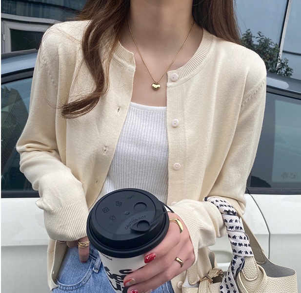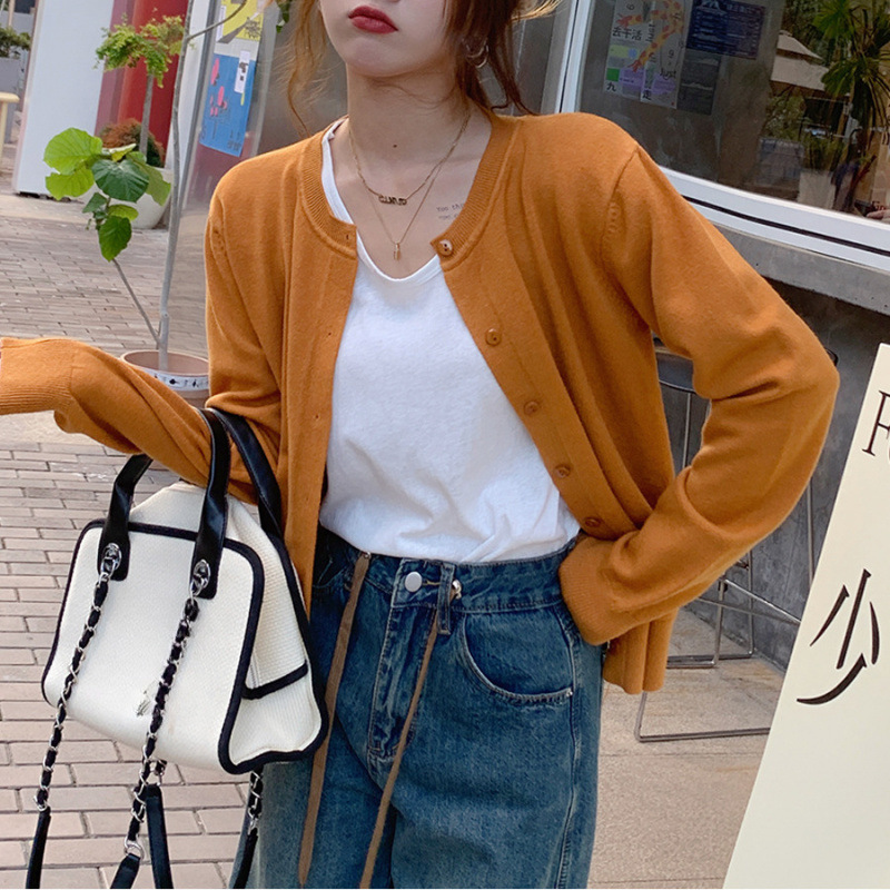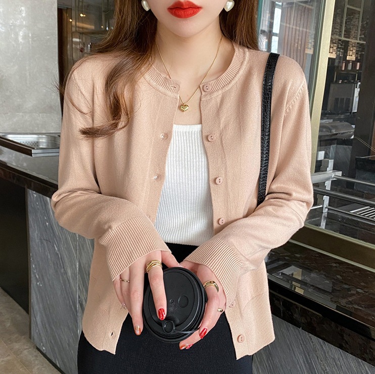 Вязаный кардиган для женщин, топ для ранней осени, новинка 2025 года, однотонный топ, с длинными рукавами, милый и элегантный свитер-накидка.