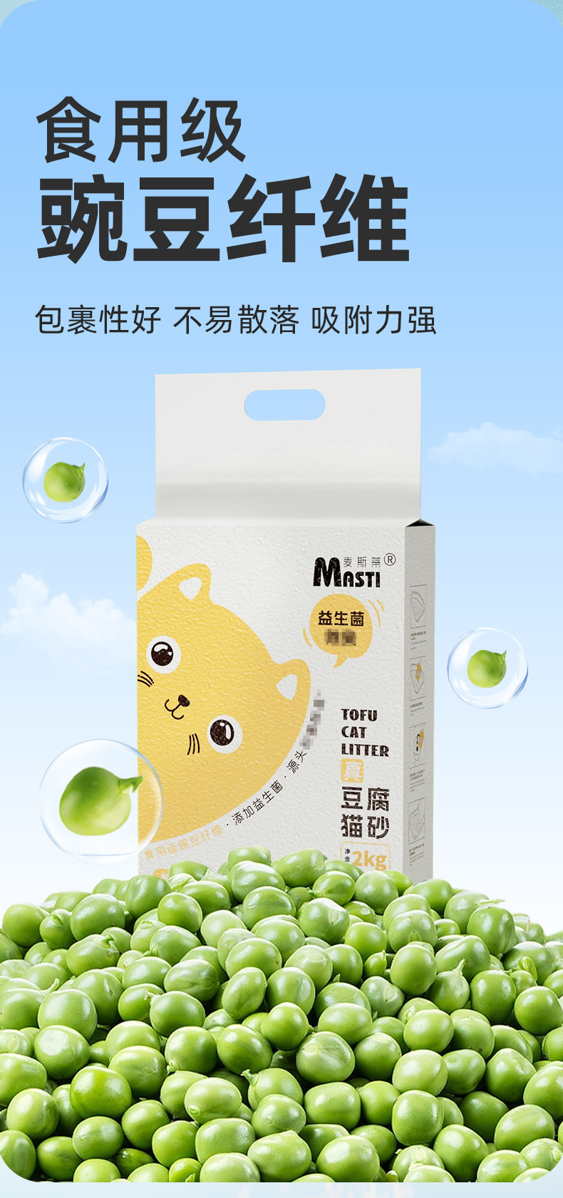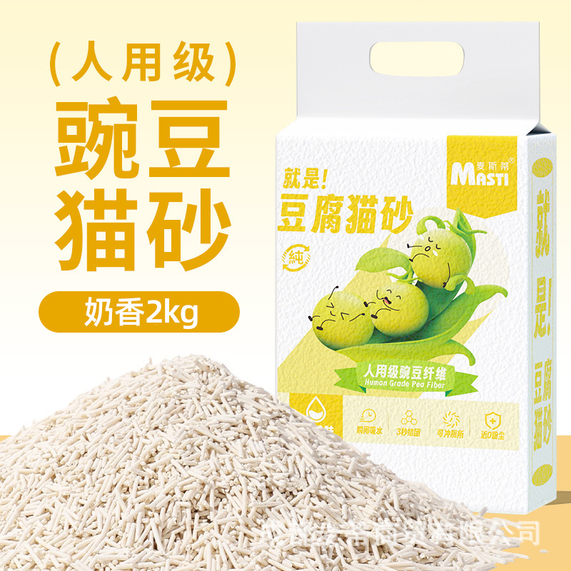 Наполнитель для кошачьего туалета на растительной основе, 2kg пробиотика, дезодорирующий, 2-килограммовый пакет для взрослых кошек и котят, с низким содержанием пыли, впитывающий, смываемый наполнитель из горохового волокна