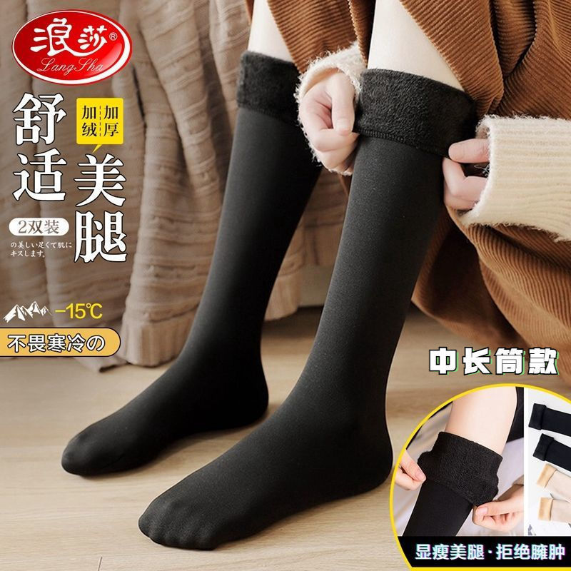 Утолщенные Носки Longsha на флисовой подкладке, женские теплые носки-манжеты средней длины на осень и зиму, милые мясистые махровые зимние носки