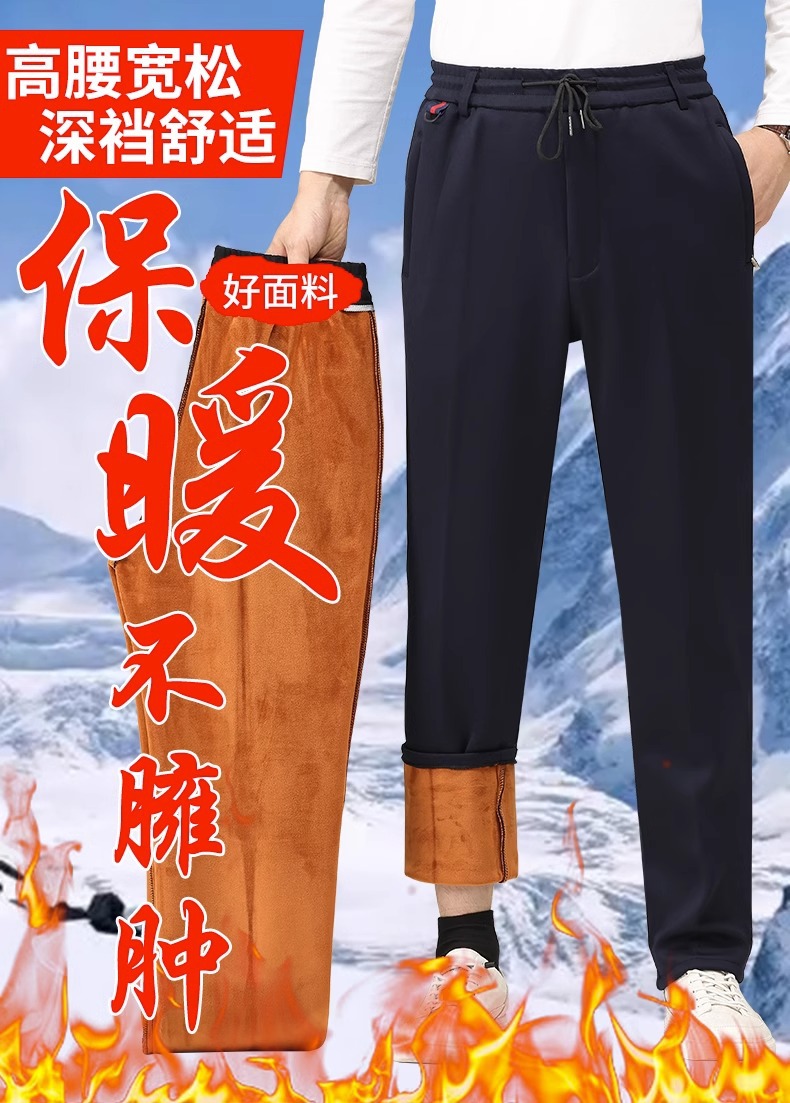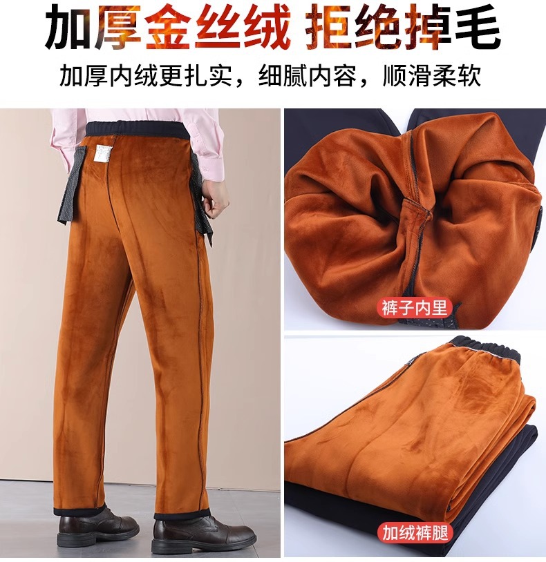 Зимние утолщенные брюки для пап на флисовой подкладке, мужские брюки для среднего и пожилого возраста, зимние золотые бархатные мужские повседневные брюки, брюки для пожилых мужчин