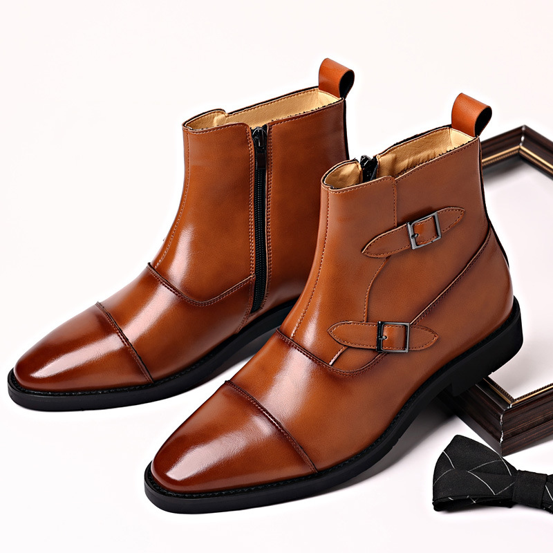 Ботинки Челси, мужские осенние новые остроносые ботильоны, кожаные ботинки с высоким берцем в британском стиле, Ботинки Martin со средним берцем, модные кожаные ботинки