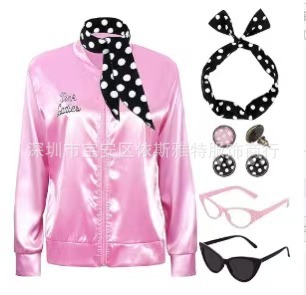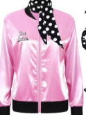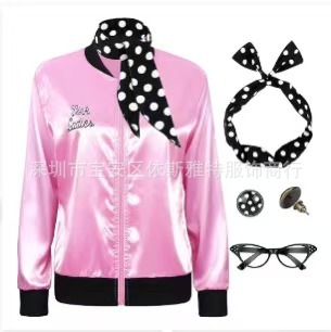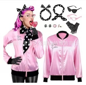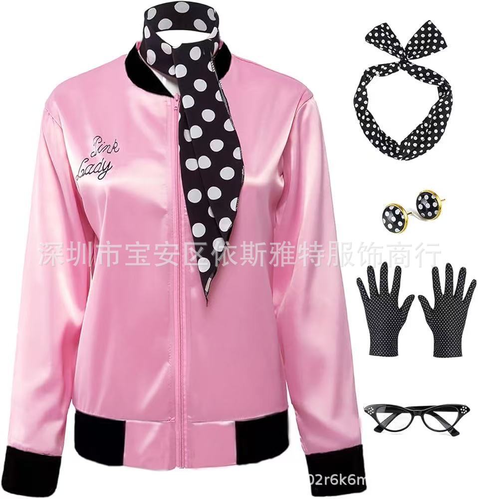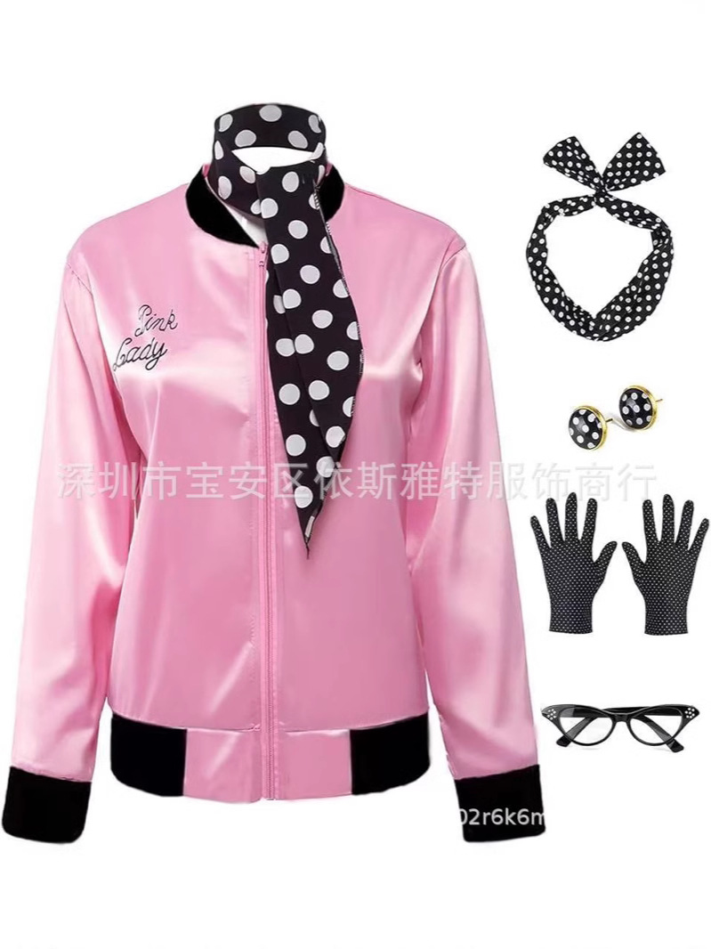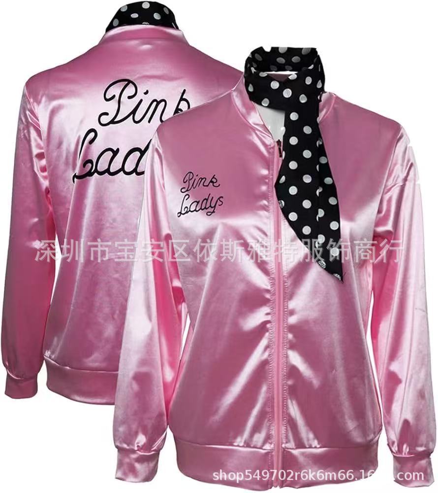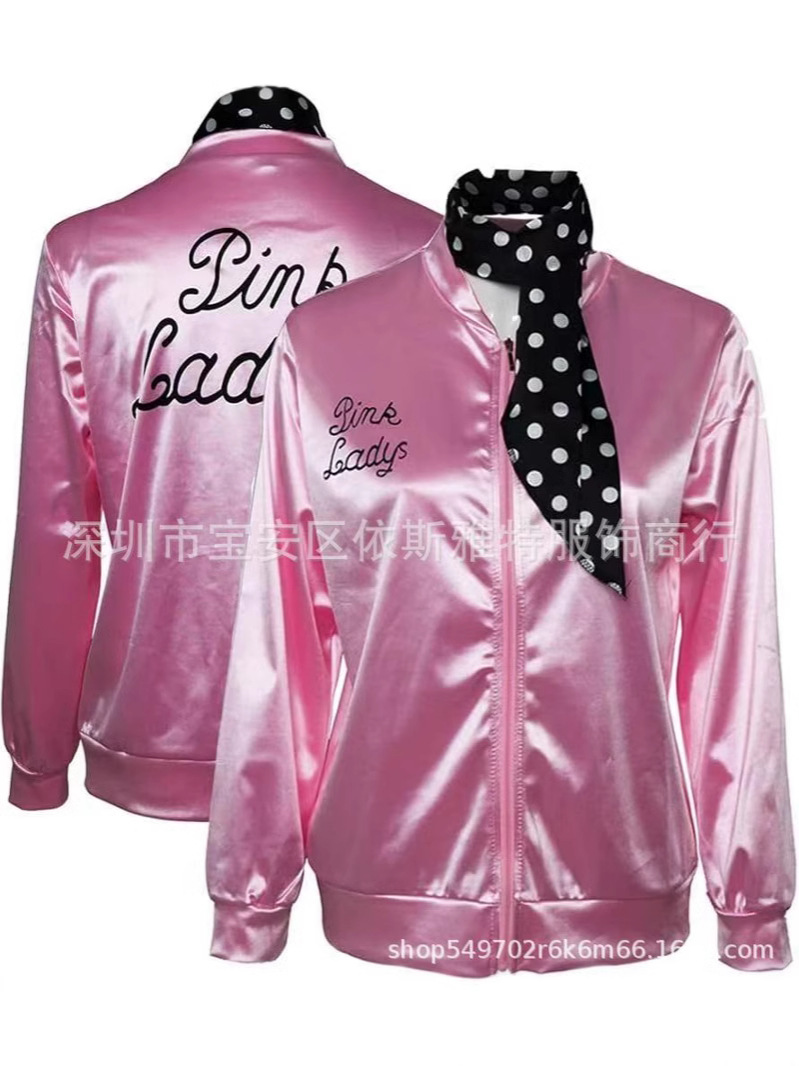 Amazon Foreign Trade Женский стиль 20-го века Розовая супер мягкая атласная куртка с шарфом в горошек