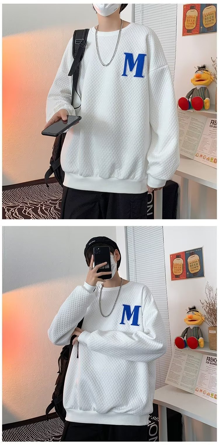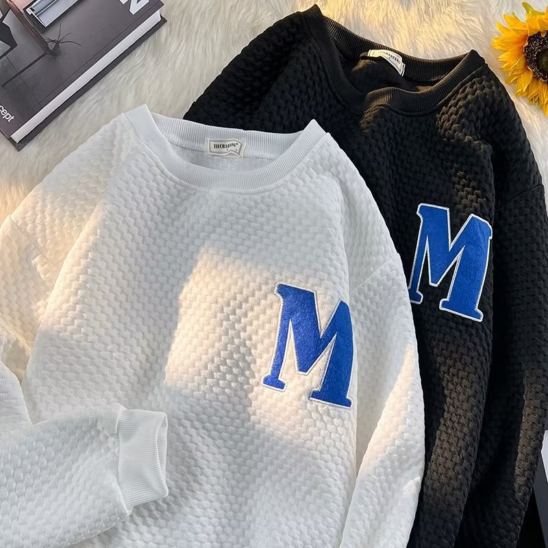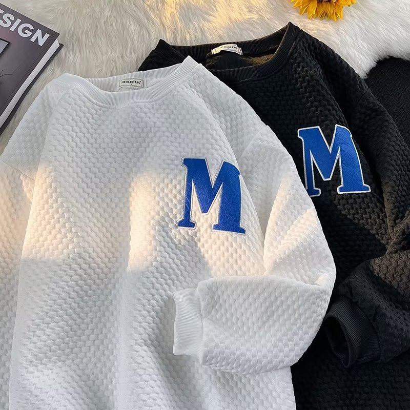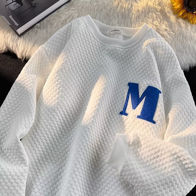 Толстовка Мужская вафельная свободная в гонконгском стиле, универсальный пуловер с длинными рукавами, осенне-зимняя Модная брендовая куртка с вышивкой и надписью