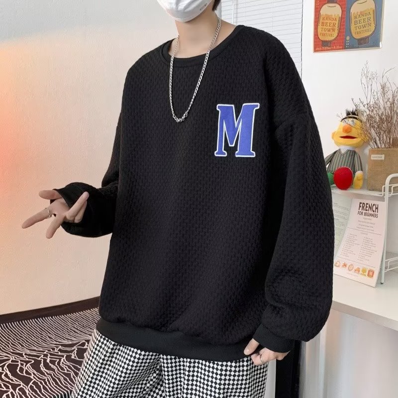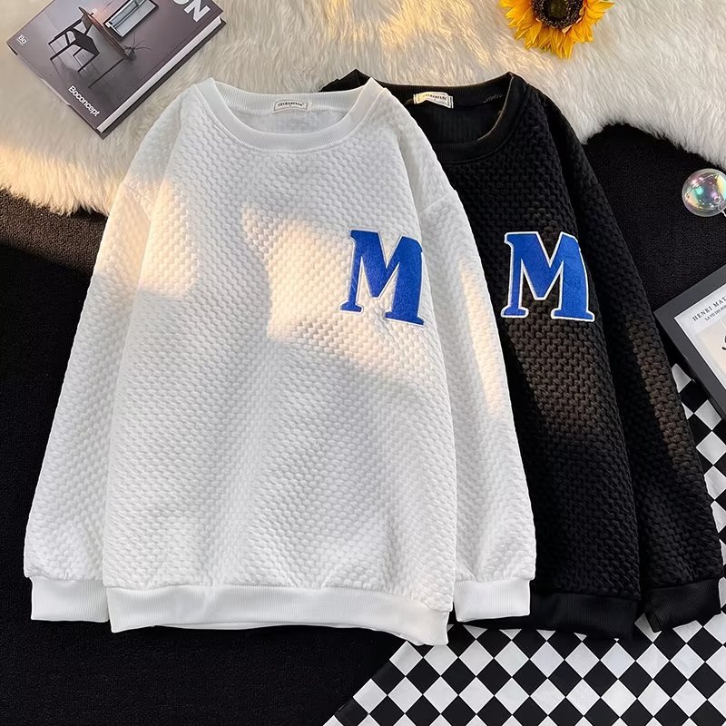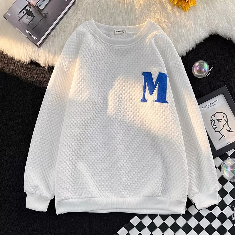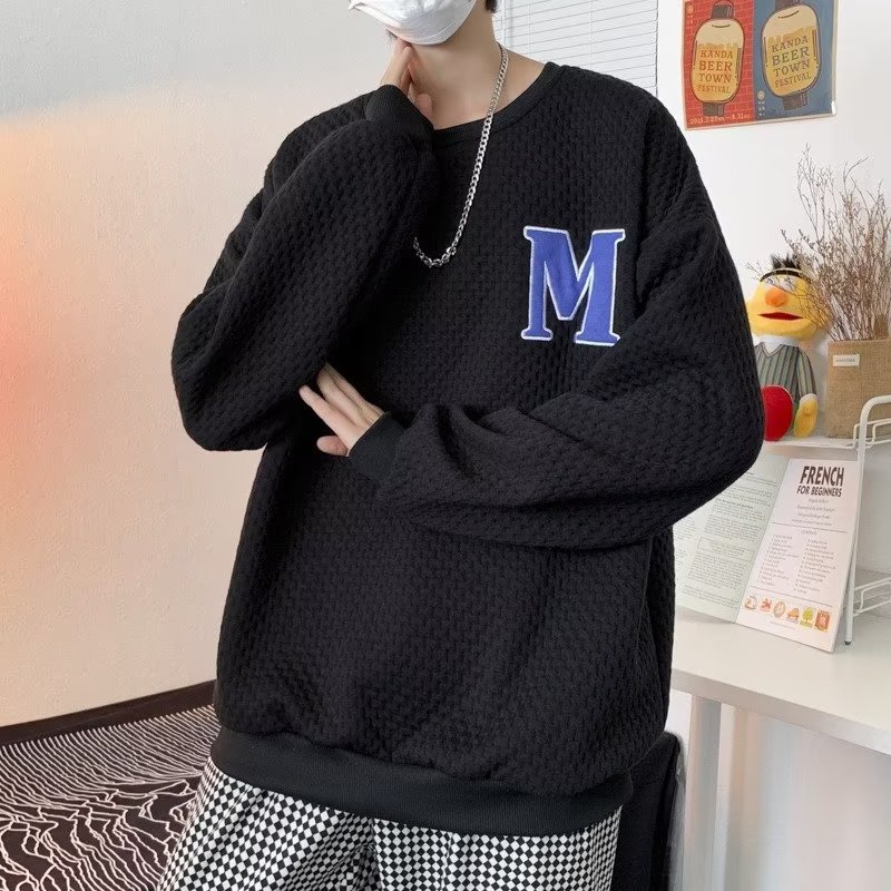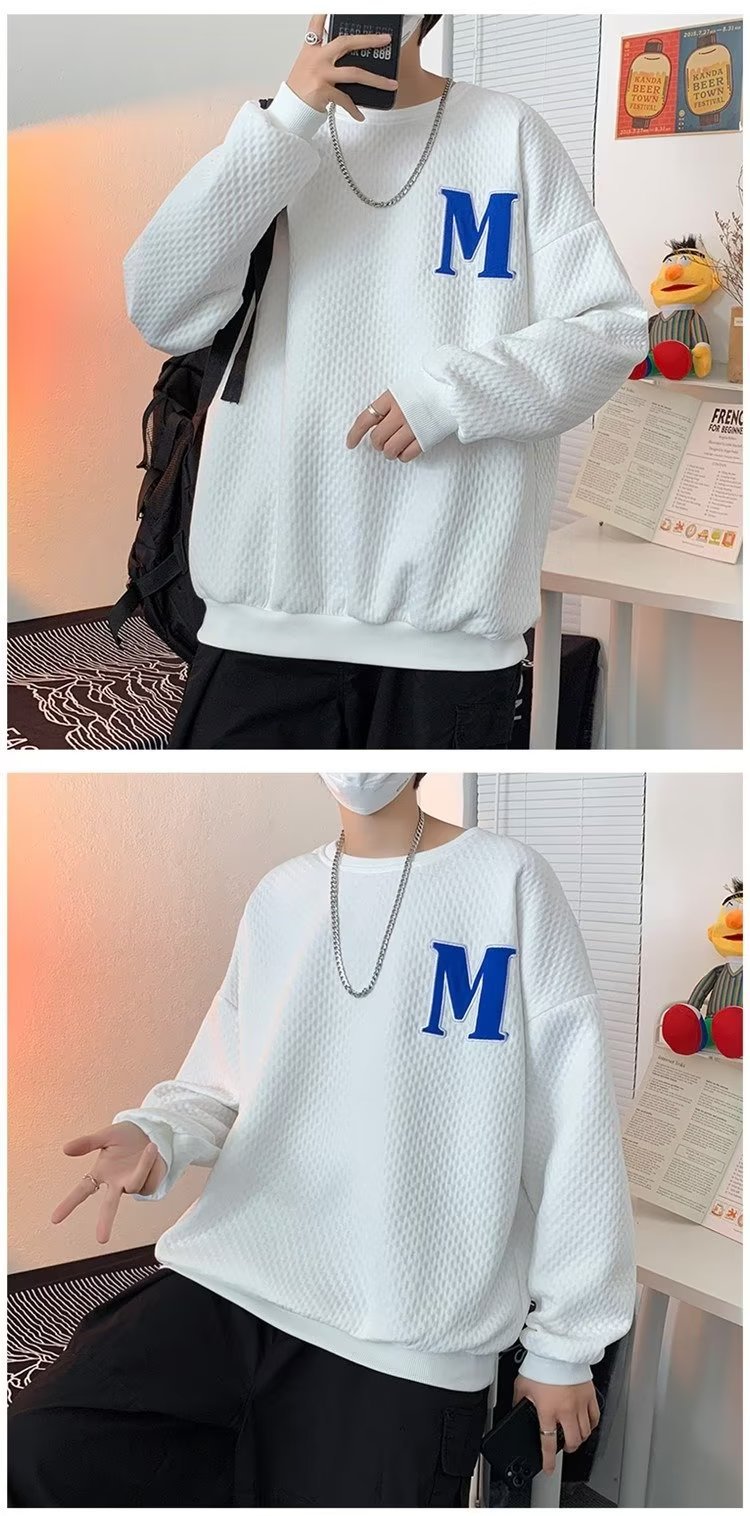 Толстовка Мужская вафельная свободная в гонконгском стиле, универсальный пуловер с длинными рукавами, осенне-зимняя Модная брендовая куртка с вышивкой и надписью