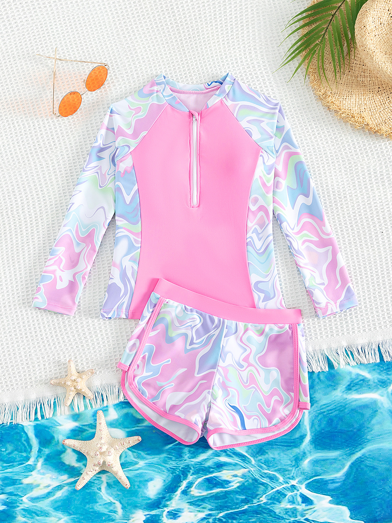 2024 новый спа детский сплит купальник йога костюм милый купальник на молнии пляжный купальник