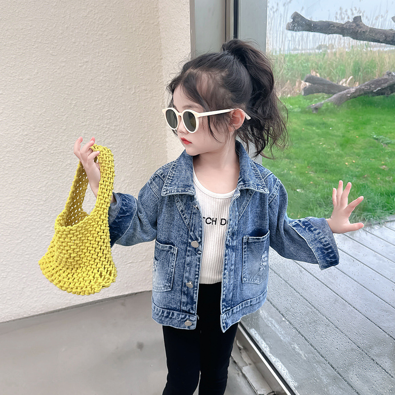 Джинсовые топы для девочек Весна и осень 2023 г. Новая верхняя одежда Модные детские жилеты Маленькая, средняя и большая детская одежда Топы в западном стиле