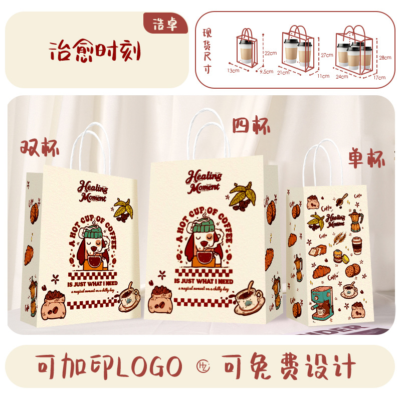 Бумажные пакеты из крафт-бумаги, пакеты для переноски, упаковочные пакеты для кофе и молочного чая на вынос, подарочные пакеты для праздников, индивидуальные оптовые бумажные пакеты.