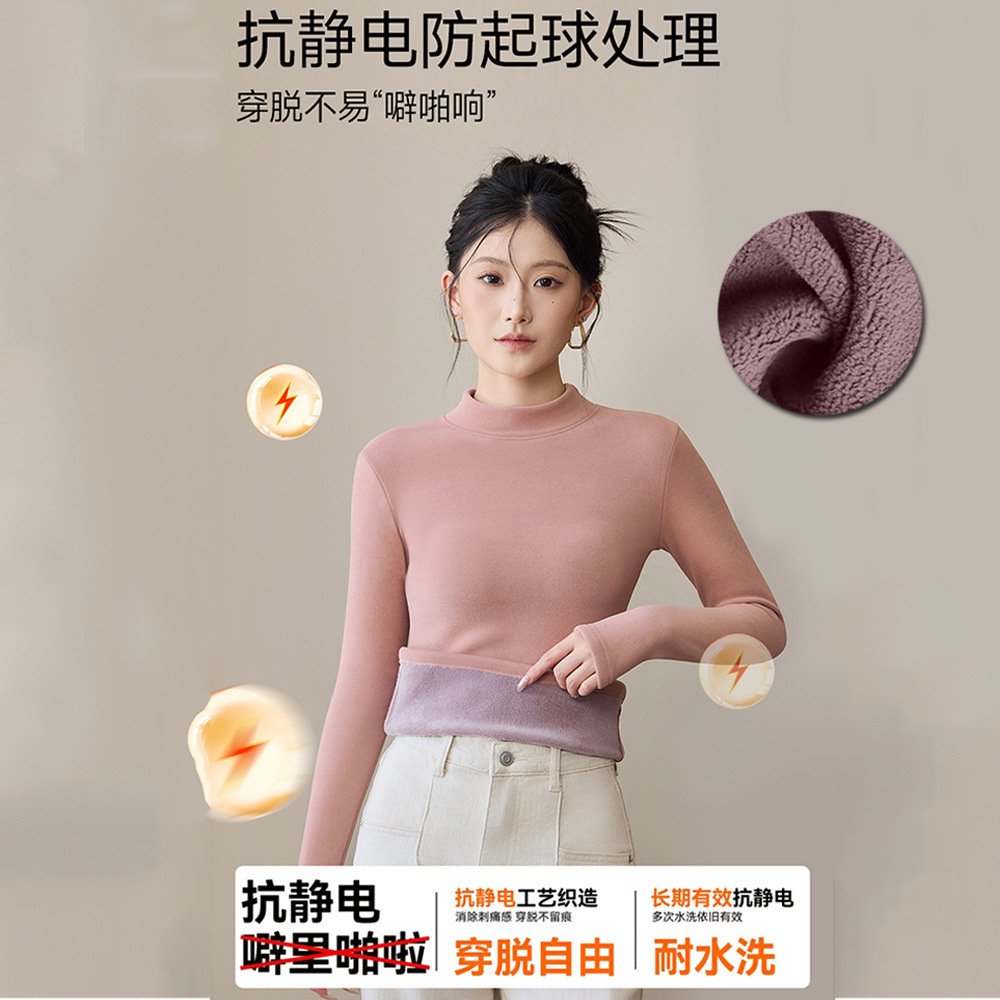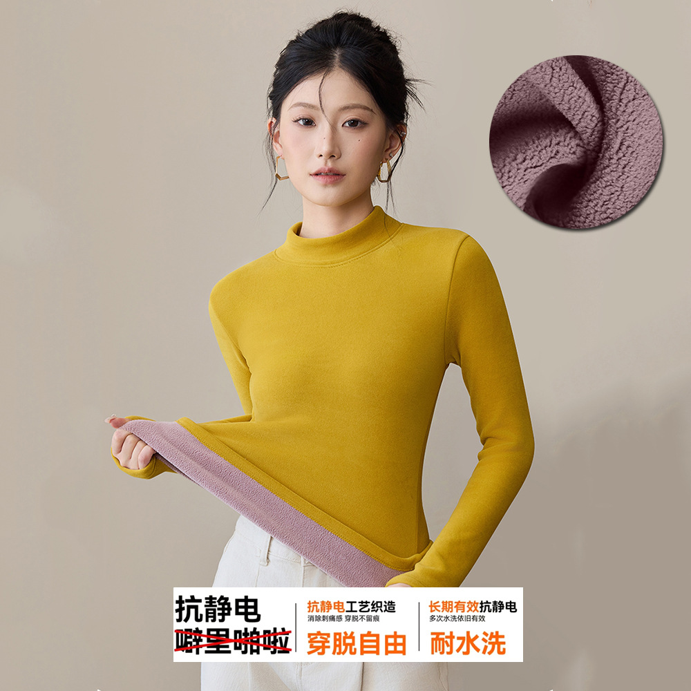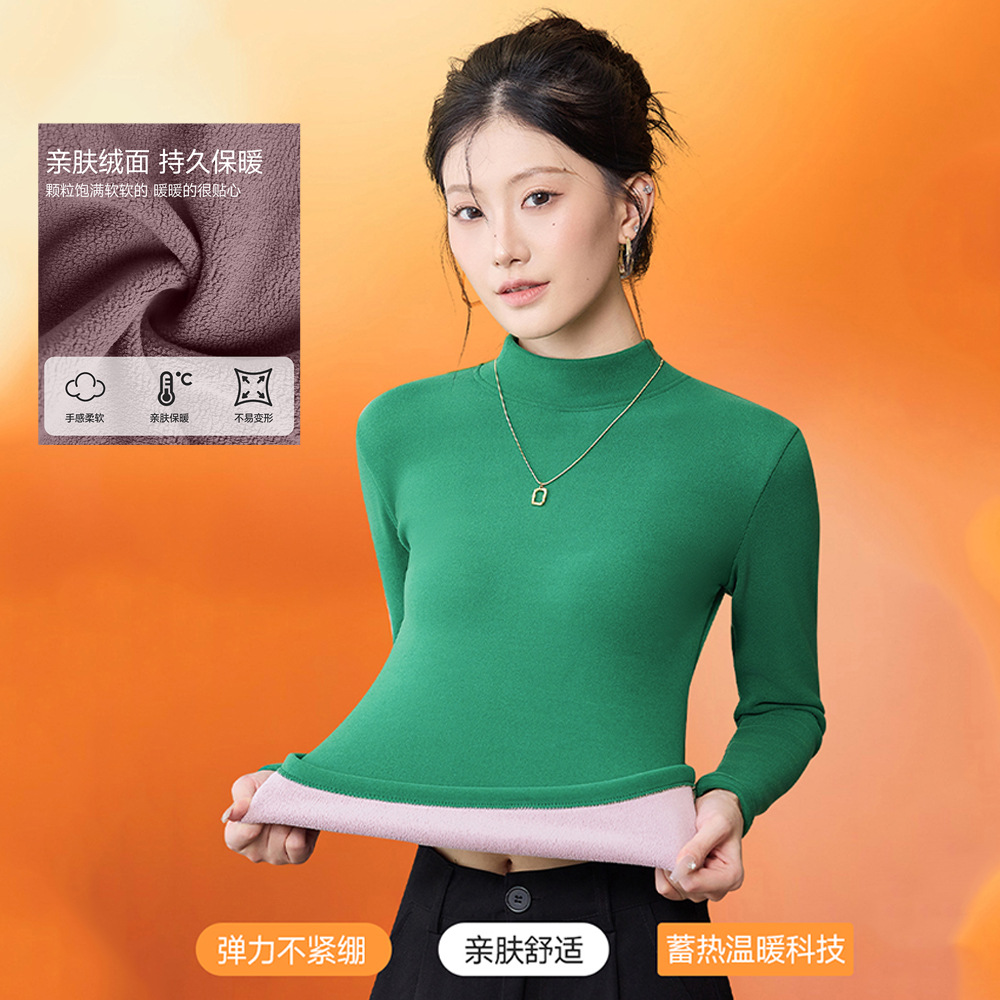 2025 новая осенне-зимняя женская рубашка с полуводолазкой на флисовой подкладке и утолщенным низом с облегающим кроем и теплым немецким бархатным топом с длинными рукавами