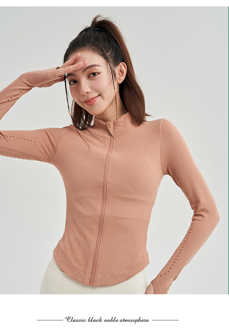 Новая спортивная куртка для весны и лета, для аэробики, бега, кардиган на молнии, вязаный воротник-стойка, облегающий крой, для фитнеса и йоги, для женщин