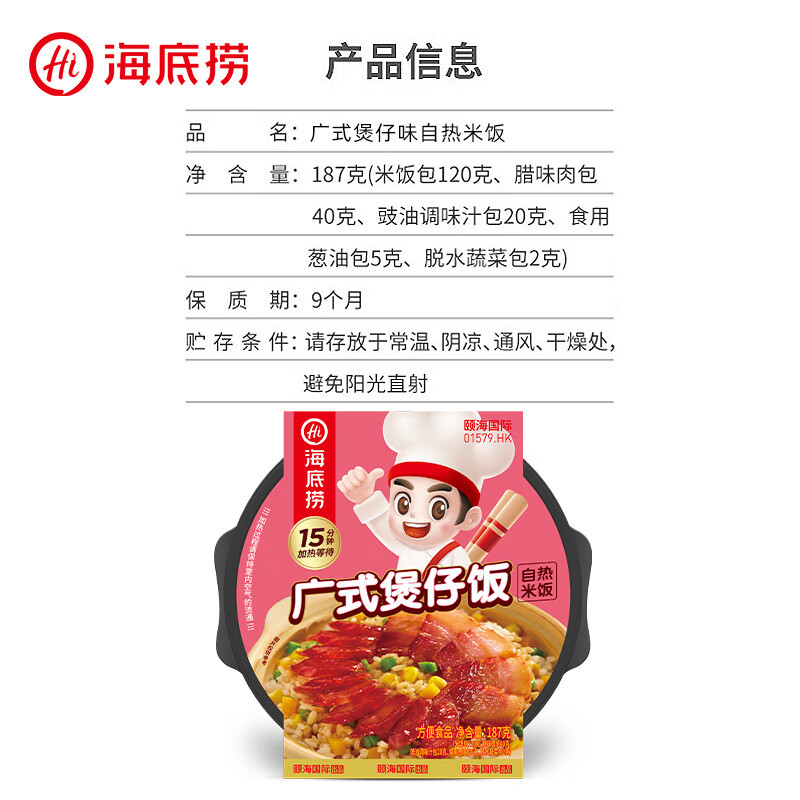 Haidilao [Свиной рис с маринованными овощами] Самонагревающийся рис 192 г (одна коробка); Хайдилао [вкус тушеной говядины] самонагревающийся рис 272 г (одна коробка); Haidilao [Рис с томатной грудинкой и говядиной] Самонагревающийся рис 272 г (одна коробка); Haidilao [Баранина карри] Самонагревающийся рис 272 г (одна коробка); Haidilao [кухонный вкус кантонской глиняной кастрюли] самонагревающийся рис 187 г (одна коробка); Haidilao [Говядина с жареным перцем] Самонагревающийся рис 165 г (одна коробка); Haidilao [Грибной говяжий] Самонагревающийся рис 165 г (одна коробка); Haidilao [Spicy Chicken] Самонагревающийся рис 160 г (одна коробка); Haidilao [Курица Терияки] Самонагревающийся рис 165 г (одна коробка); Haidilao [Тушеная курица] Самонагревающийся рис 170 г (одна коробка); Хайдилао [Рубленая свинина со вкусом рыбы] Самонагревающийся рис 170 г (одна коробка); Haidilao Chopstick Chef [Курица Терияки] Самонагревающийся рис 181 г (одна коробка); Haidilao Chopstick Chef [Тушеная курица] Самонагревающийся рис 187 г (одна коробка); Haidilao Chopstick Chef [Измельченная свинина со вкусом рыбы] Самонагревающийся рис 187 г (одна коробка); Haidilao Chopstick Chef [Spicy Chicken] Самонагревающийся рис 175 г (одна коробка); Haidilao Chopstick Chef [Бифштекс с томатами] Самонагревающийся рис 272 г (одна коробка); Haidilao Chopstick Chef [Кантонский рис в глиняной кастрюле] Самонагревающийся рис 187 г (одна коробка); Haidilao Chopstick Chef [Рис с карри и говядиной] Самонагревающийся рис 272 г (одна коробка); Haidilao Chopstick Chef [Вкус тушеной говядины] Самонагревающийся рис 272 г (одна коробка); Haidilao [Хрустящие говяжьи рубцы] Самоварка 435 г (одна коробка); Haidilao [Острый нежный говяжий филе] Самоварный горячий горшок 435 г (одна коробка); Haidilao [Томатная грудинка с говядиной] Самоварка 365 г (одна коробка); Haidilao [Пикантный вегетарианский] Горячий горшок, приготовленный самостоятельно, 400 г (одна коробка); Haidilao [Острая хрустящая свинина] Горячий горшок, приготовленный самостоятельно, 275 г (одна коробка); Haidilao [Хрустящая свинина с томатами] Горячий горшок, приготовленный самостоятельно, 275 г (одна коробка); Haidilao [Old Chengdu Flavor] Горячий горшок, приготовленный самостоятельно, 300 г (одна коробка); Haidilao [Острые фрикадельки] Горячий горшок, приготовленный самостоятельно, 272 г (одна коробка); Haidilao [Жирный томатный соус] Горячий горшок, приготовленный самостоятельно, 212 г (одна коробка); Эксклюзивный набор Haidilao [Острый нежный говяжий филе] для самостоятельного приготовления горячего горшка, 325 г (одна упаковка); Эксклюзивный продукт Haidilao [Томатный говяжий брискет] для самостоятельного приготовления горячего горшка, 267 г (одна упаковка); Haidilao [насыщенный вкус кунжутного соуса] самоготовленный Малатанг 273 г (одна коробка); Haidilao [Spicy Flavor] Самостоятельно приготовленный Малатанг 271 г (одна коробка); Haidilao [Густой томатный суп] Самоварный Малатанг 271 г (одна коробка); Mo Xiaoxian [Бамбуковые ростки, говяжий рис] Самонагревающийся рис 275 г (одна коробка); Мо Сяосиан [Тушеная курица с рисом] Самонагревающийся рис 275 г (одна коробка); Мо Сяосиань [Тушёная говядина] Самонагревающийся рис 285 г (одна коробка); Мо Сяосиань [Японское куринное карри] Саморазогревающийся рис, 360 г (одна упаковка); Мо Сяосиань [рис с колбасой в кантонском стиле] 369 г (одна коробка); Мо Сяосянь [Рис с нарезанной свининой в соусе из рыбы по сычуаньскому стилю] 379 г (одна коробка); Мо Сяосиан [Тайваньский тушеный рис с соусом] 379 г (одна коробка); Мо Сяоксиан [Мясо с маринованными овощами] Самонагревающийся рис 305 г (од