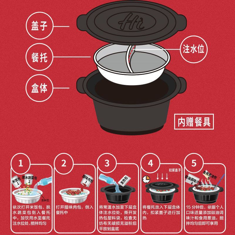 Haidilao Самонагревающийся горшок с подогревом риса Еда быстрого приготовления Горшок быстрого приготовления Самонагревающийся горшок быстрого приготовления Обед Самонагревающийся рис