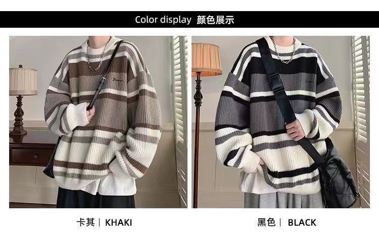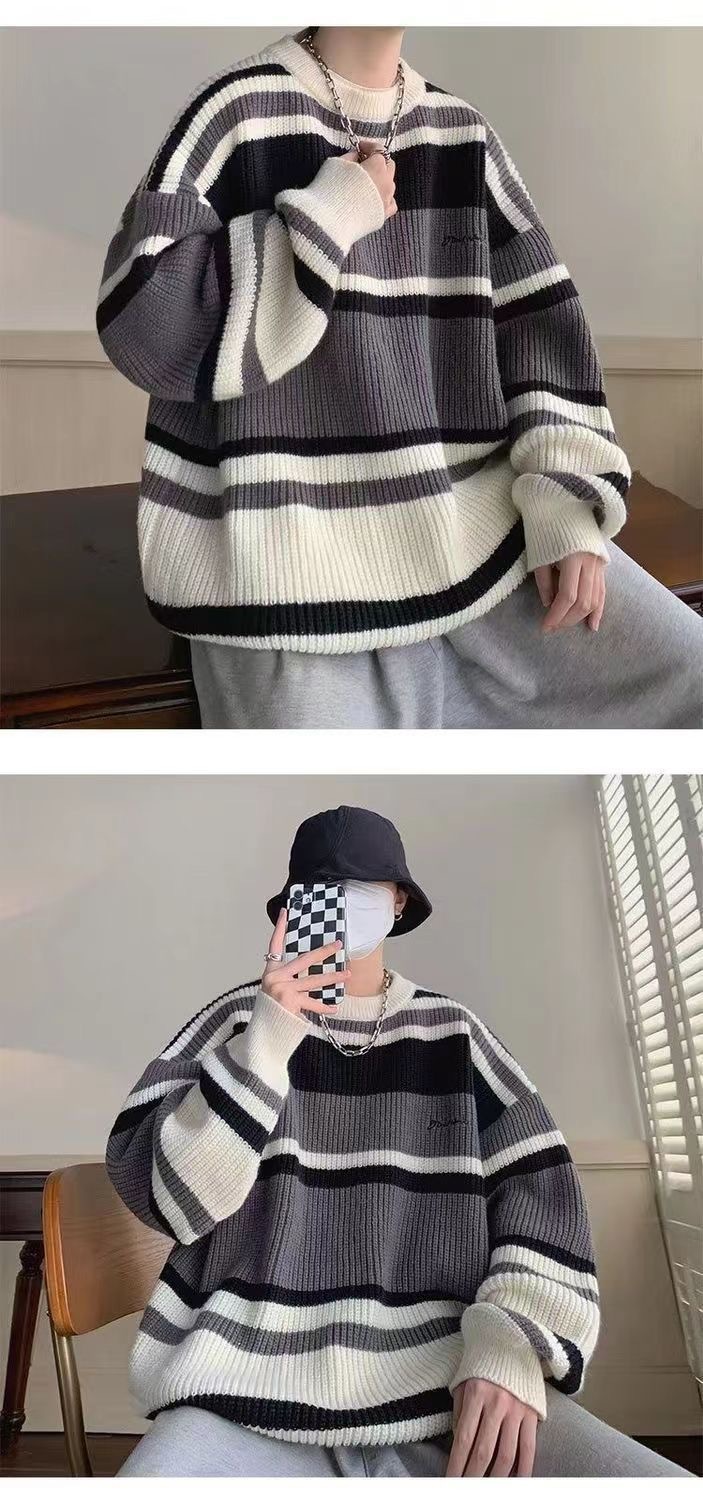 Осенне-зимний полосатый свитер Мужская универсальная верхняя одежда мужской свитер с круглым вырезом Гонконг ветер весна и осень плюс размер свитер фабрика прямые волосы