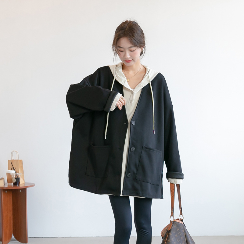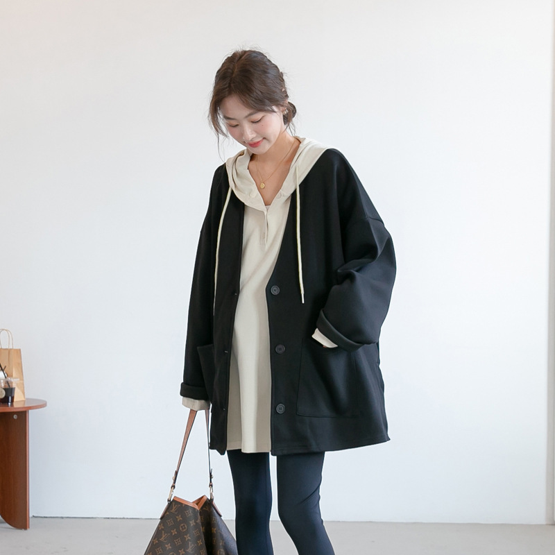 Осенне-Зимний новый Одежда для беременных корейский свободные средней длины воздушного слоя материнства пальто кардиган корейский стиль с длинным рукавом