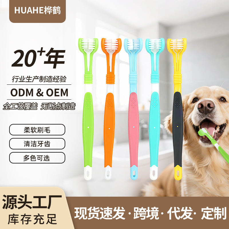Трансграничная поставка трехголовых зубных щеток для домашних животных, чистки полости рта, чистки зубов маленьких собак, зубных щеток с мягкой щетиной и длинной ручкой, оптовая продажа производителей.