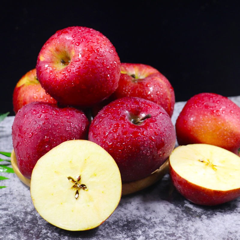 【产品亮点】"花牛"苹果果实圆锥形,全面鲜红或浓红,色泽艳丽,色相片红或条红色,果个整齐,果形端正高桩、五棱突出明显,果肉黄白色,肉质细,致密,粉面,汁液多,风味独特,香气浓郁,口感好,品质上乘。