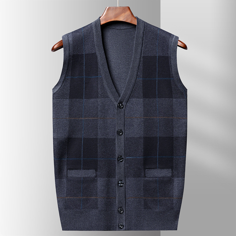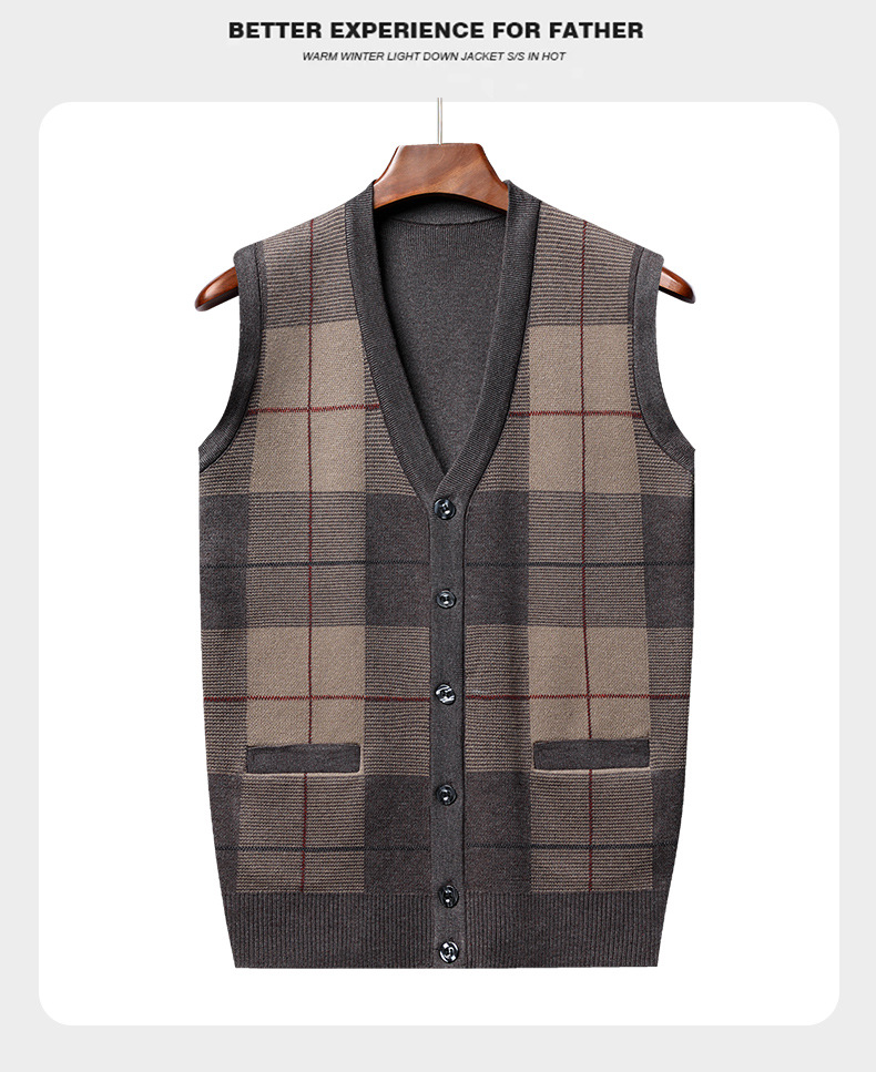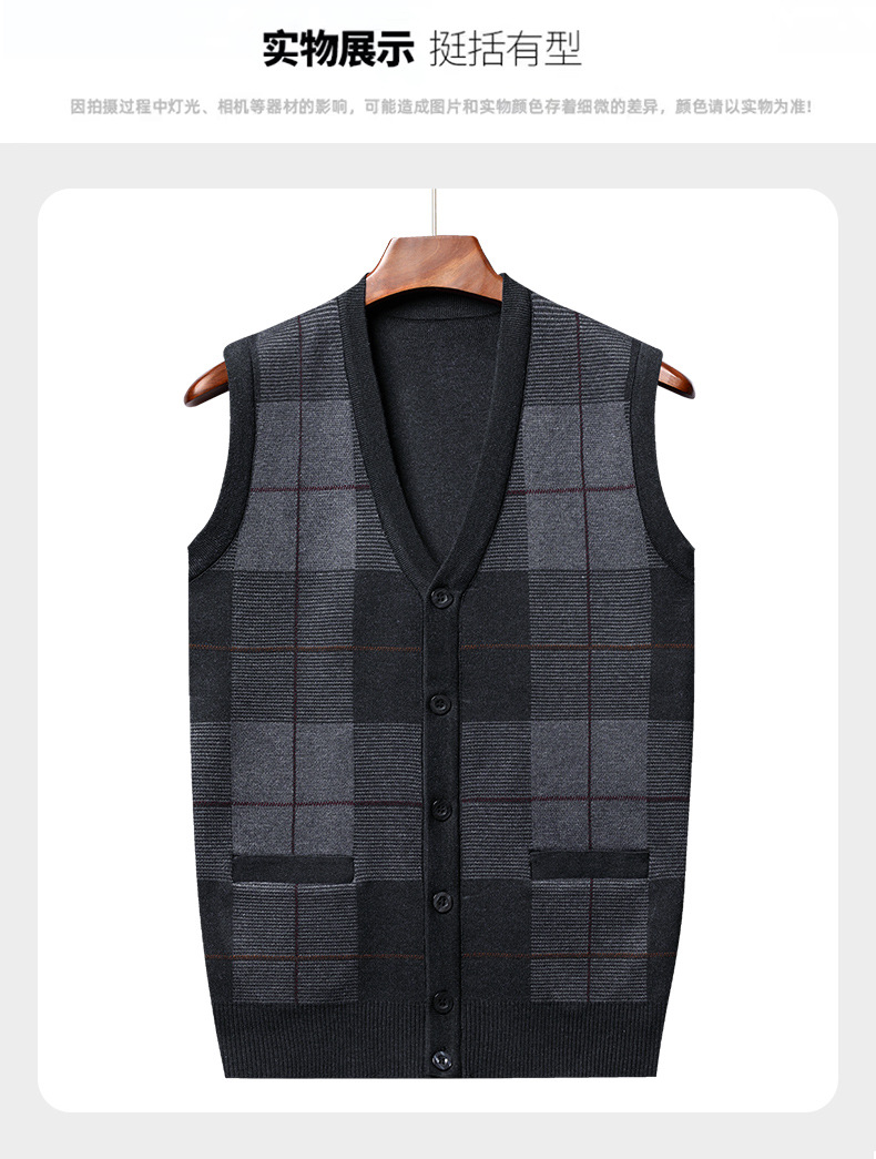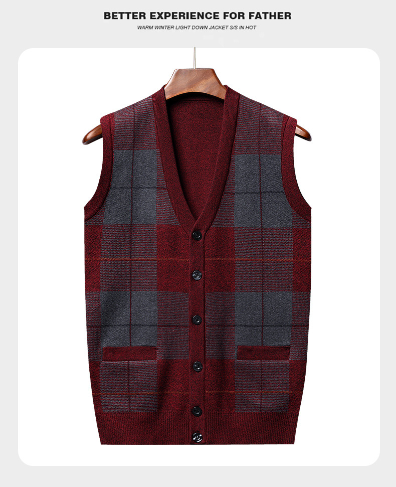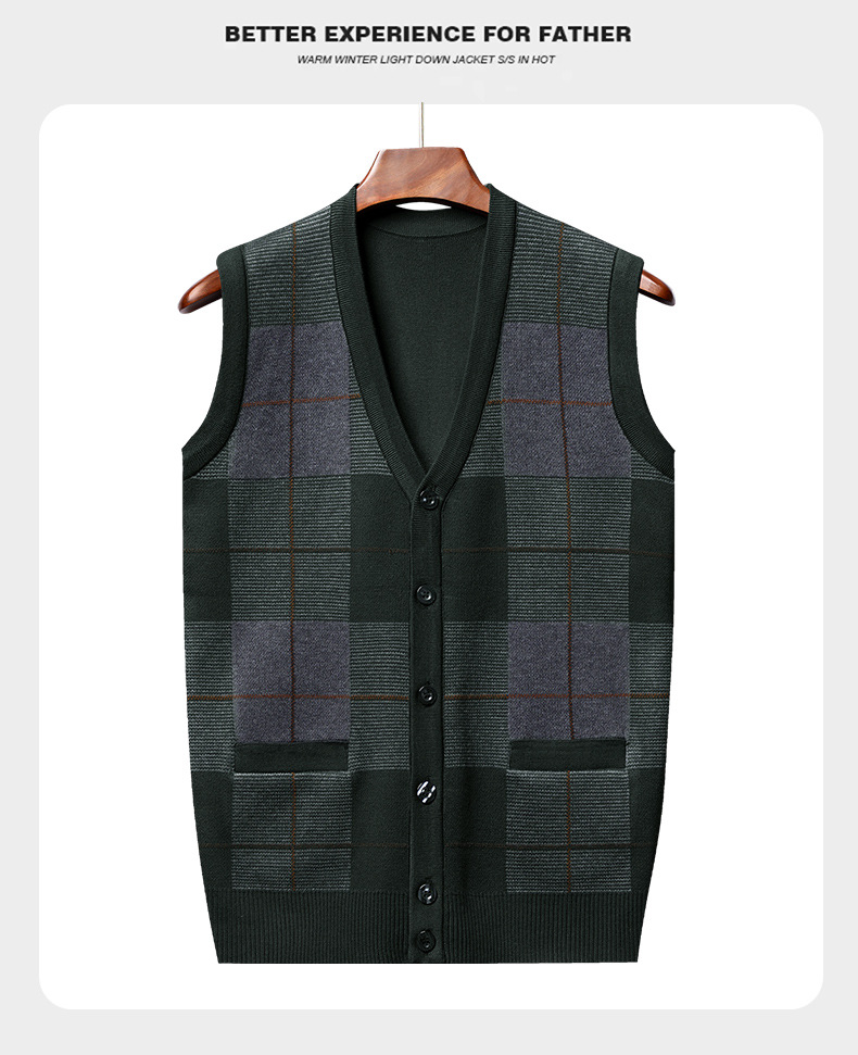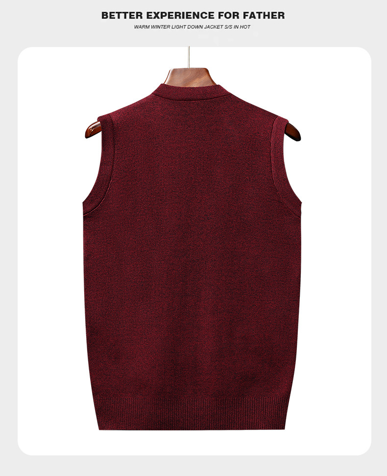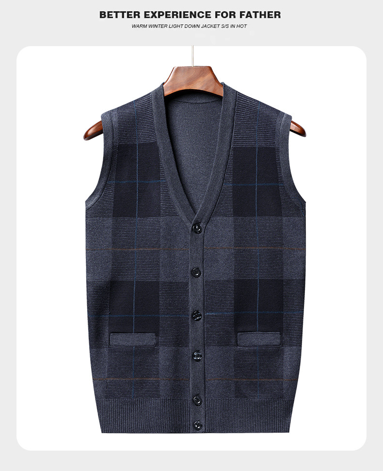 Мужской свитер из искусственной шерсти с V-образным вырезом для папы, мужской кардиган, жилет, свитер на плечо, свитер для среднего и пожилого возраста, вязаный свитер