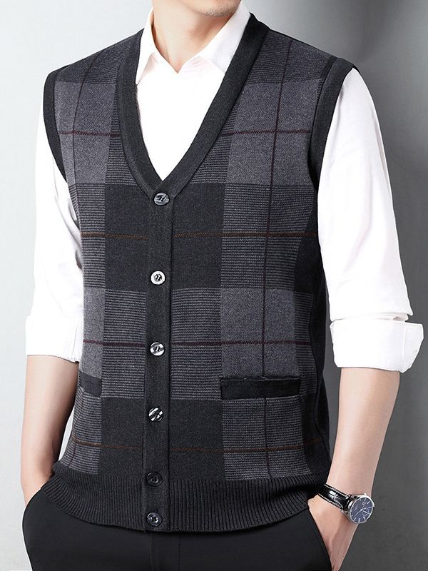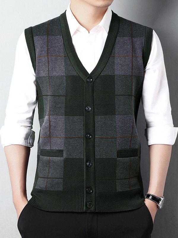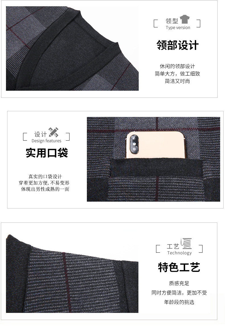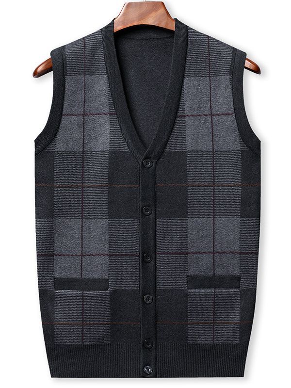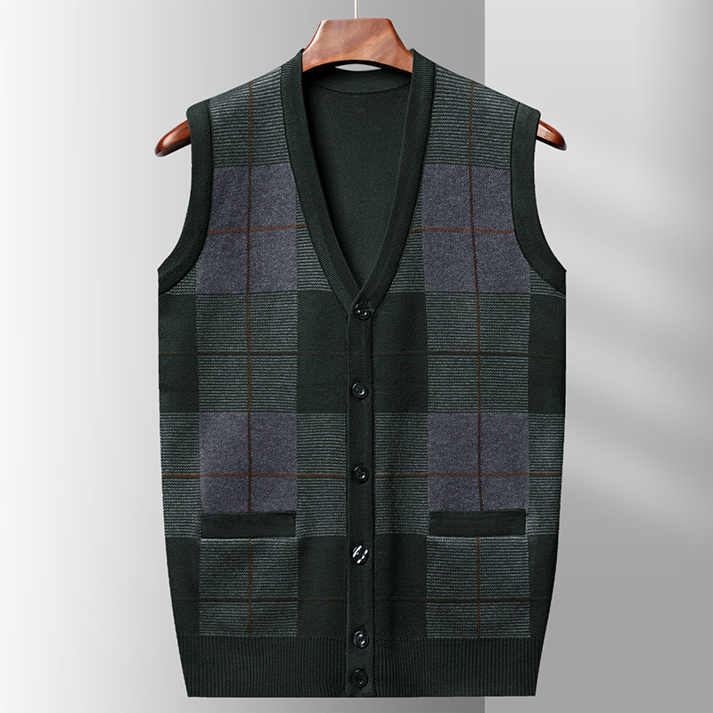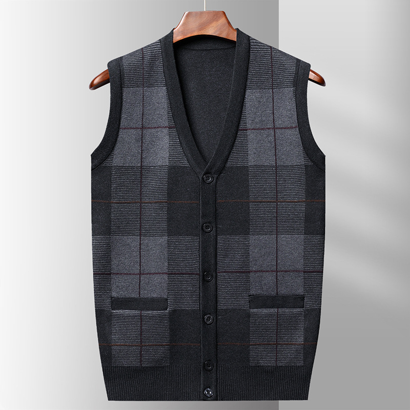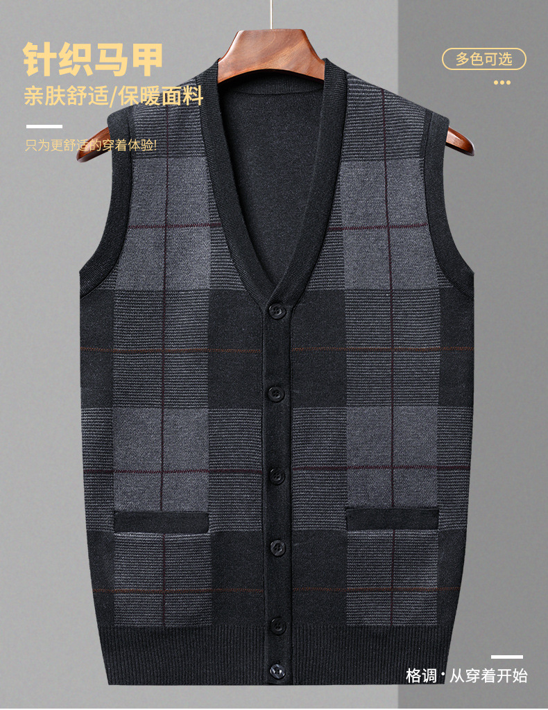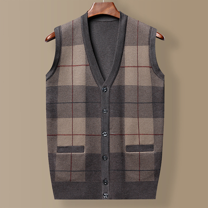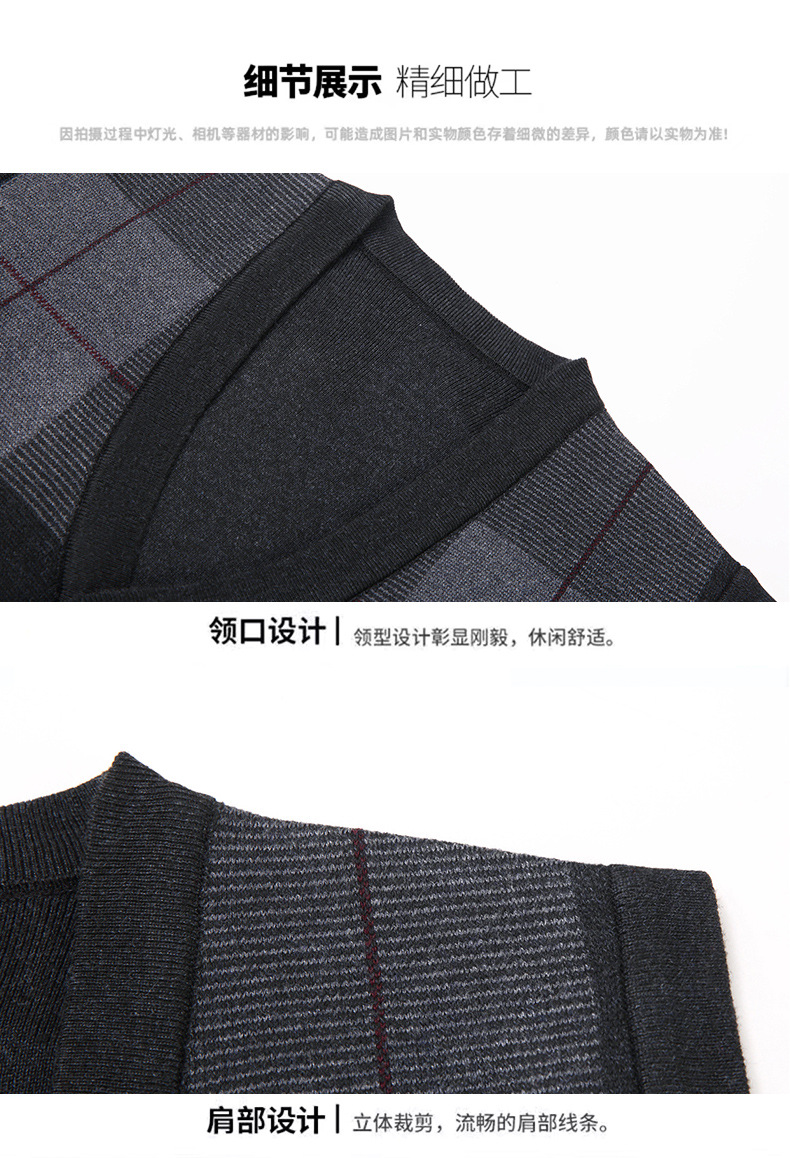 Мужской свитер из искусственной шерсти с V-образным вырезом для папы, мужской кардиган, жилет, свитер на плечо, свитер для среднего и пожилого возраста, вязаный свитер